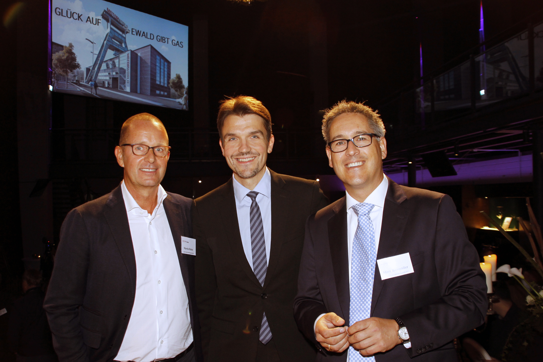 Geschäftsführer Martin Rinke, Bürgermeister Dr. Uli Paetzel und Geschäftsführer Marc Baumüller bei der KickOff-Veranstaltung auf Ewald.