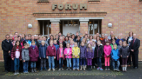 Kreis Viersen, Kreissportbund Viersen und die Sparkasse Krefeld / Kreis Viersen ehren die erfolgreichen Schüler im Laufabzeichen- und Sportabzeichen-Wettbewerb. Franz Terlinden, Marketing Sparkasse Krefeld / Kreis Viersen (2. Reihe, 1.v.r.), Angelika Feller, Vorsitzende des Kreissportbund Viersen (2. Reihe, 2.v.r.), Dr. Thomas Mohr, Vorsitzender des Ausschuss für den Schulsport Kreis Viersen (3. Reihe, 2.v.r.), und Joachim Hennig, Abteilungsleiter Schulamtsangelegenheiten (3. Reihe, 6.v.r.) gratulieren stellvertretend. Foto: Rouven Soyka / Abdruck honorarfrei