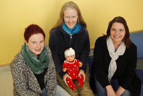 (v.l.) Dorthe Stanberger, Stadt Herten, Hebamme Judtith Rduch und Angelika Schwieters, Leiterin der FBS, freuen sich, den kostenfreien Kurs anbieten zu können.