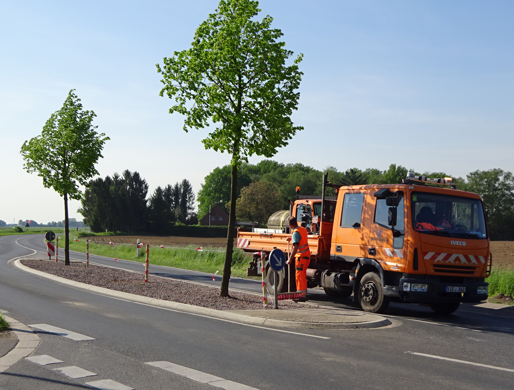 Bislang sieht die Verkehrsinsel in Kempen an der Ziegelheider Straße noch karg aus. Bald wird die Straßenmitte jedoch eine Wildblumenwiese zieren. Foto: Kreis Viersen / Abdruck honorarfrei