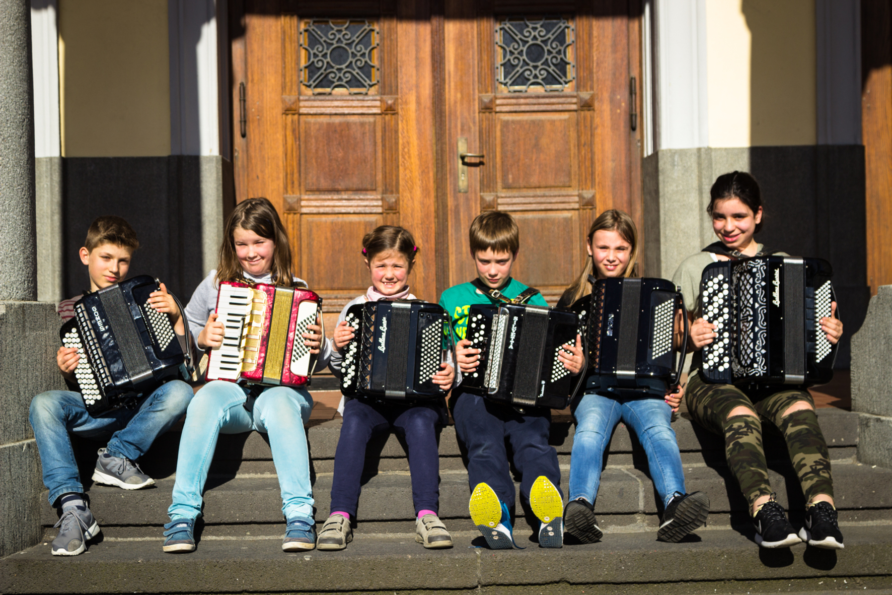 Die Akkordeon-Schüler der Kreimusikschule präsentieren ihre Instrumente. Am 23. Juni stellen sie ihr Können bei einem Konzert in der Evangelischen Kirche in Waldniel unter Beweis. Foto: Kreismusikschule Viersen / Abdruck honorarfrei