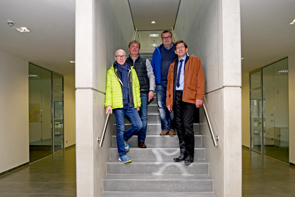 Bürgermeister Fred Toplak, Geschäftsführer Ingo Ossenbühl, Prokurist Stefan Arnoldi und der Leiter der Wirtschaftsförderung Michael Blume (v.l.) beim Unternehmensrundgang.