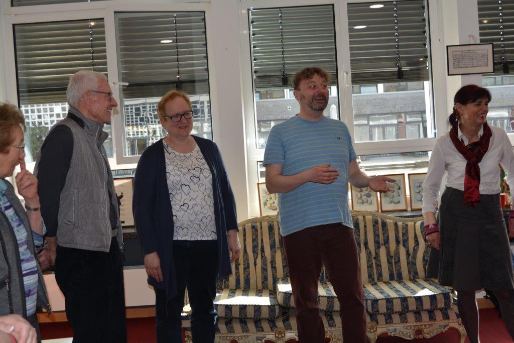 Matthias Brandebusemeyer (2.v.r.) mit Vorlesepaten und Christiane Rehlinghaus (r.) in der Bibliothek der Lise-Meitner-Schule.