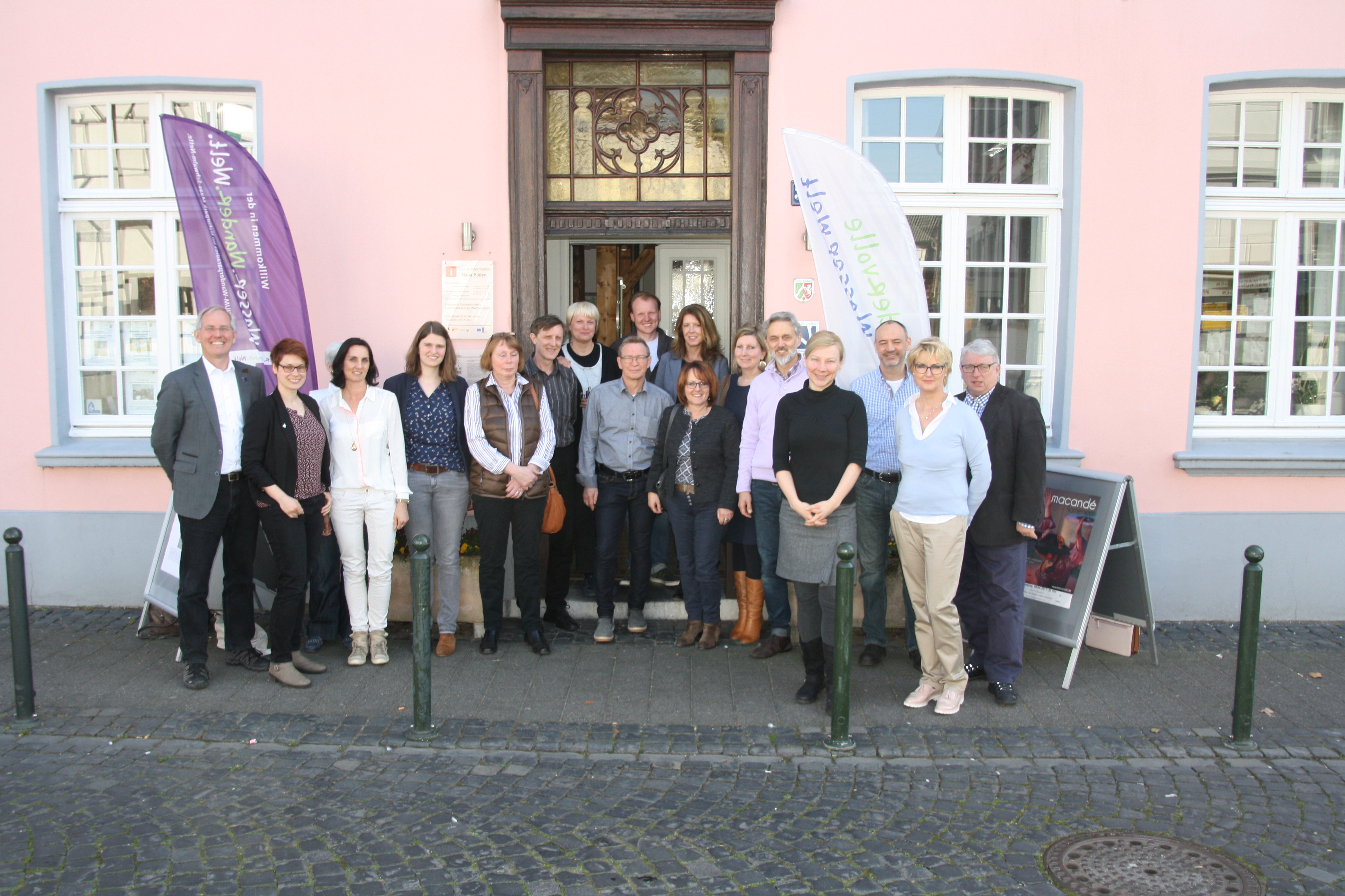 Zum Auftakt des neuen Projekts zur Barrierefreiheit tauschten sich Naturpark-Geschäftsführer Michael Puschmann (l.) und seine Mitarbeiter mit Vertretern der Kommunen, Tourist-Informationszentren sowie mit Gastronomie-Inhabern aus der Region im Naturparkzentrum „Haus Püllen“ in Wachtendonk aus.
