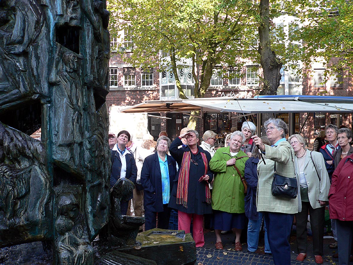 Adelheid Sicking zeigte den Damen von der KFD Alpenfeen bei der Führung durch das Alte Dorf Westerholt auch den Brunnen vor der Kirche.
