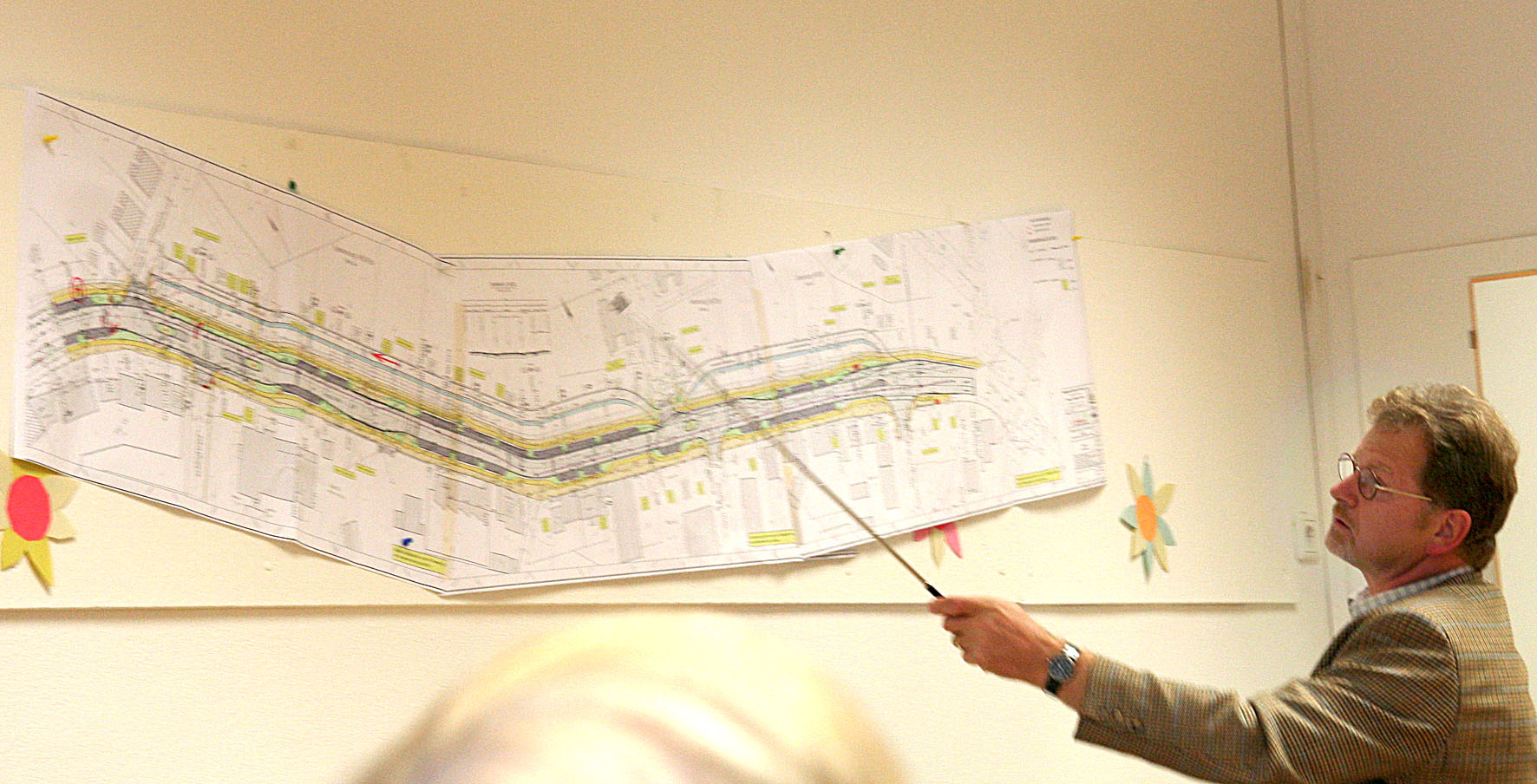 Friedhelm Kaiser vom ZBH informierte die Anwohner über die Pläne für die Kanalsanierung und Umgestaltung der Feldstraße.