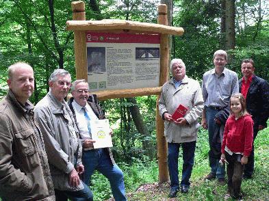 Auf dem Foto lächeln von links nach rechts Dr. Thilo Warneke, Roland Petrowsky (HWGHV), Bürgermeister Edgar Paul, Landrat Dr. Udo Schlitzberger, Peter Nissen (Amt für den ländlichen Raum Hofgeismar) und der Niester Gemeindevertretungsvorsitzende Uwe Blumenstein