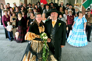 Eine Hochzeit in ganz besonderem Stil: Wenn Captain Tomsen White Guide seine Lady Shane White Guide ehelicht kommen die "Texas Rangers, Company C, Lubbock - Herten" natürlich mit. Samt Planwagen, Flaggen und ausladenden Reifröcken feiern sie den großen Tag ihres Captains.