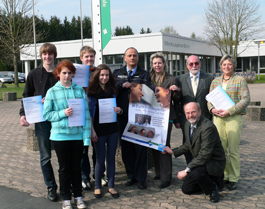Auf dem Foto sieht man von links nach rechts Andre Schreiber, Jenny Lengemann, Sascha Kretzer und Johanna Kroh (alles neue Fahrbegleiter/eine Fahrbegleiterin war krank- deshalb nur vier auf dem Foto), Michael Grieneisen (PP Nordhessen), Vizelandrätin Susanne Selbert, Werner Nicolaus (1. Beigeordneter Niestetal), Rainer Gunkel (kniend/KVG) und Schulleiterin Eva Diegel.