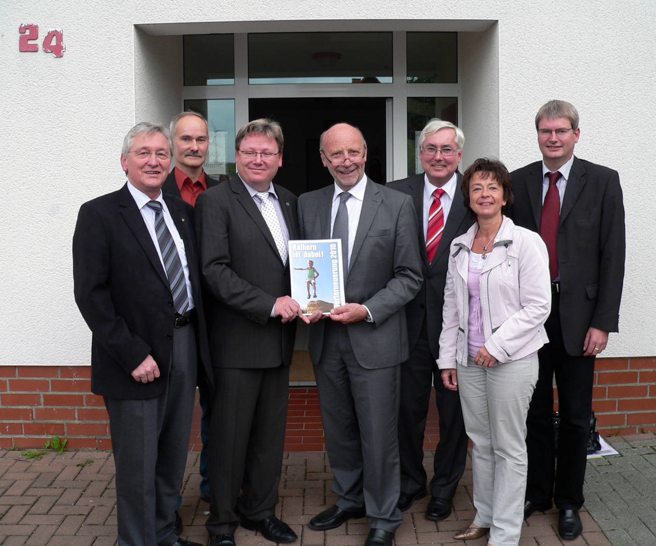 Auf dem Foto sieht man von links nach rechts Wilfried Wehnes (Kreisbeigeordneter Landkreis Kassel), Eckhard Bröske (Stellv. Ortsvorsteher Balhorn), Bürgermeister Ralf Pfeiffer, Minister Dieter Posch, MdL Helmut von Zech, MdL Brigitte Hofmeyer und Peter Nissen (Amt für den ländlichen Raum).
