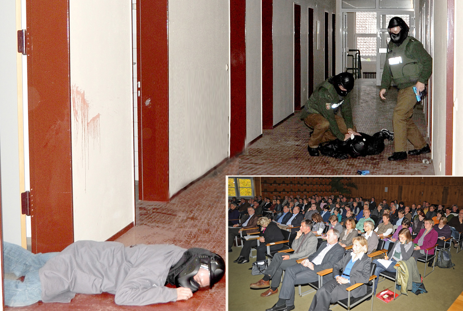 Polizei übt den Ernstfall an Schulen. Zur Auftaktveranstaltung "Schulische Krisenteams" des RBN kamen mehr als 100 Lehrerinnen und Lehrer von 53 weiterführenden Schulen.