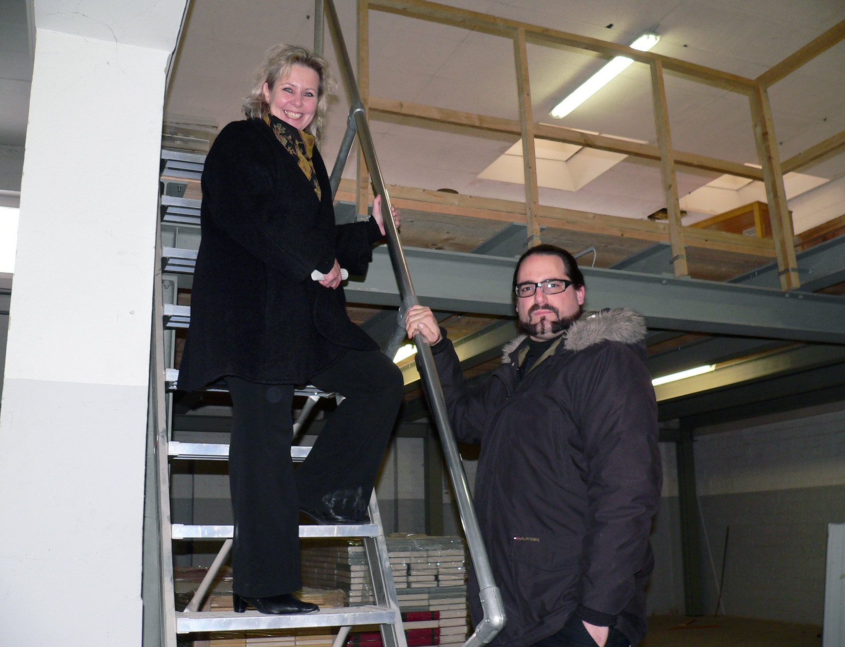 Auf dem Bild sieht man Vizelandrätin Susanne Selbert und Sebastian Fleiter (Nachrichtenmeisterei) in den neuen Räumen.
