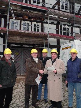 Auf diesem Foto freuen sich von links nach rechts Christian Primus (Amt für den ländlichen Raum Hofgeismar), Landrat Uwe Schmidt, Peter Nissen (Amt für den ländlichen Raum), Bernhard Klug (Bürgermeister Trendelburg) und Detlev Schminke (Bauamtsleiter Trendelburg).