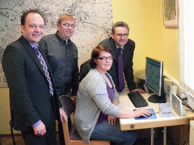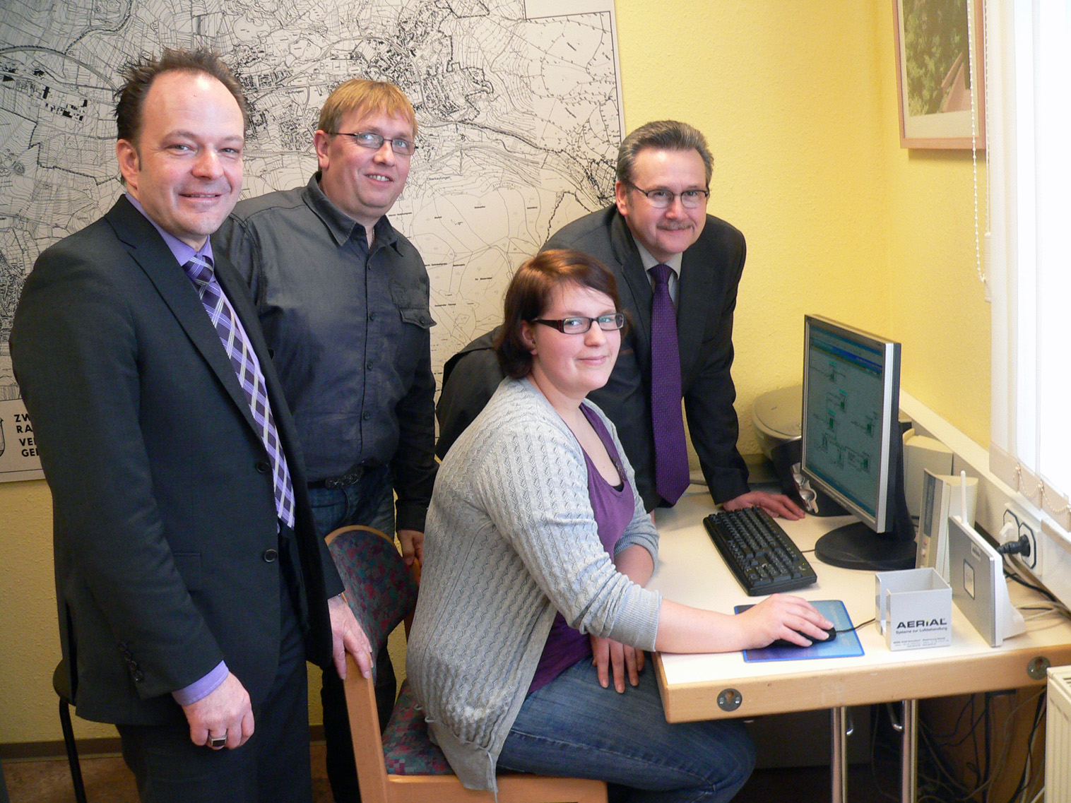 Auf den Fotos sieht man den Kaufunger Bürgermeister Arnim Roß, Klaus Diebel, Lisa-Marie Kerth und Landrat Uwe Schmidt bei der Fernüberwachung der Kaufunger Wasserversorgung bzw. die Erste Beigeordnete Doris Bischoff, Horst Westphal und Andreas Gritzmann (beide AGiL), Lisa-Marie Kerth und Klaus Diebel bei der selben Tätigkeit.
