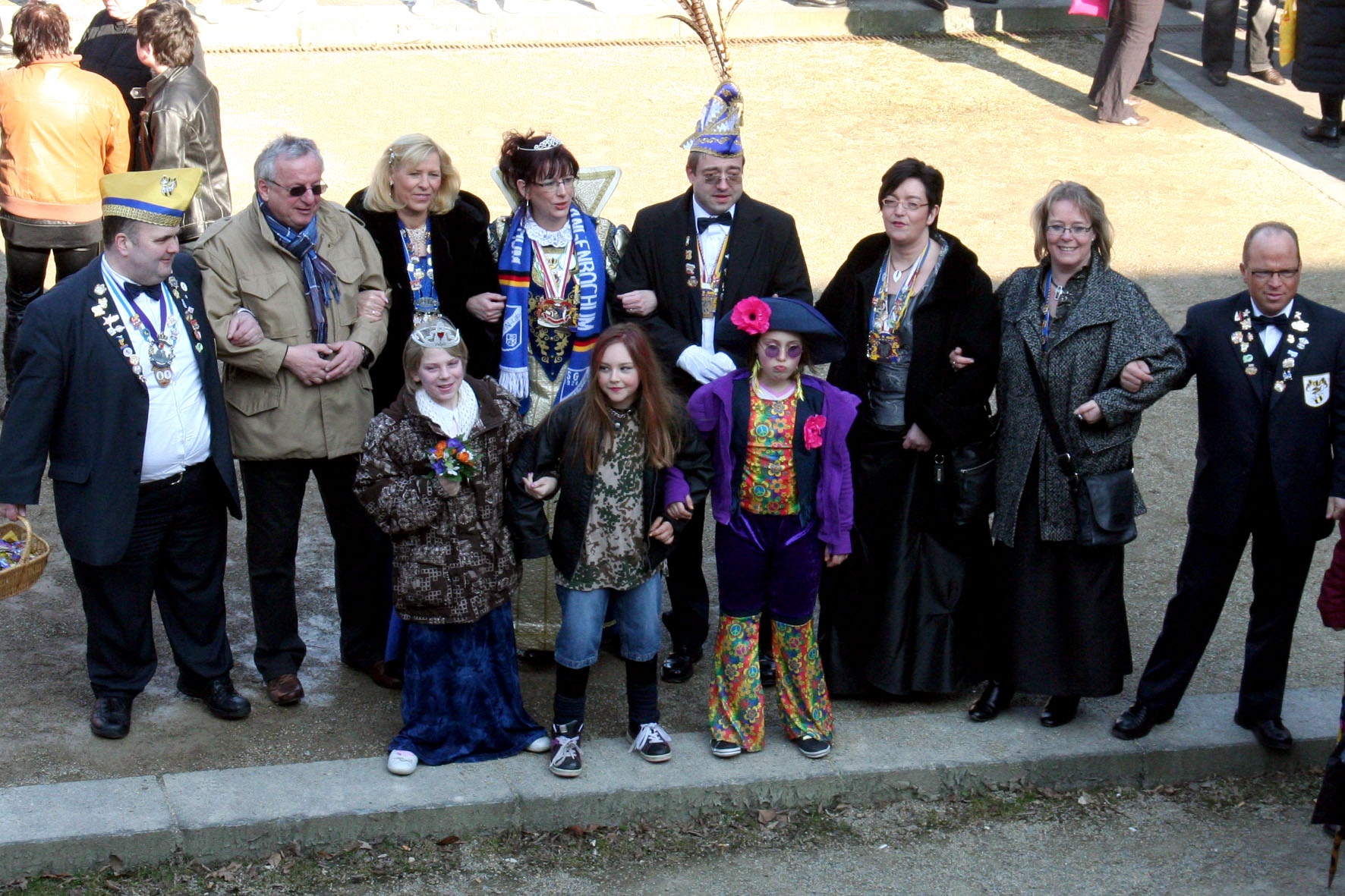 Auf der Baumtreppe wartet das Gefolge auf den Bürgermeister und die Party im Glashaus.