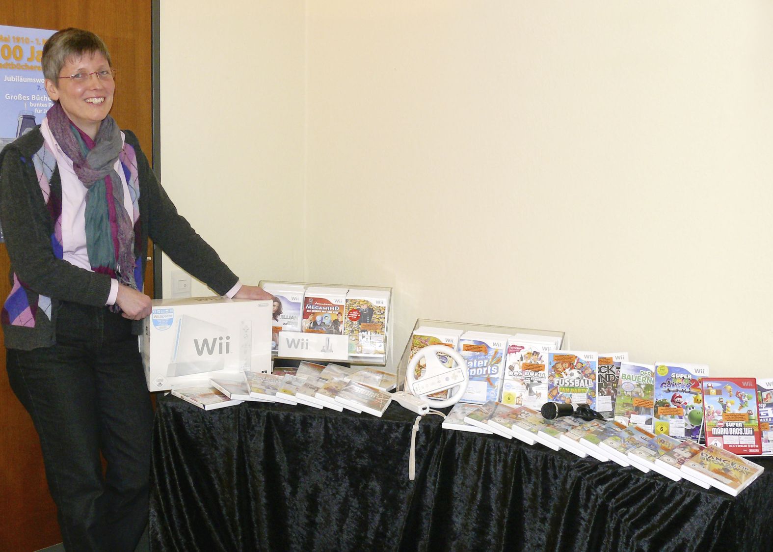 Büchereileiterin Gudrun Völcker freut sich, ab sofort auch die beliebten Wii-Spiele anbieten zu können. 73 Spiele stehen zurzeit zur Auswahl.