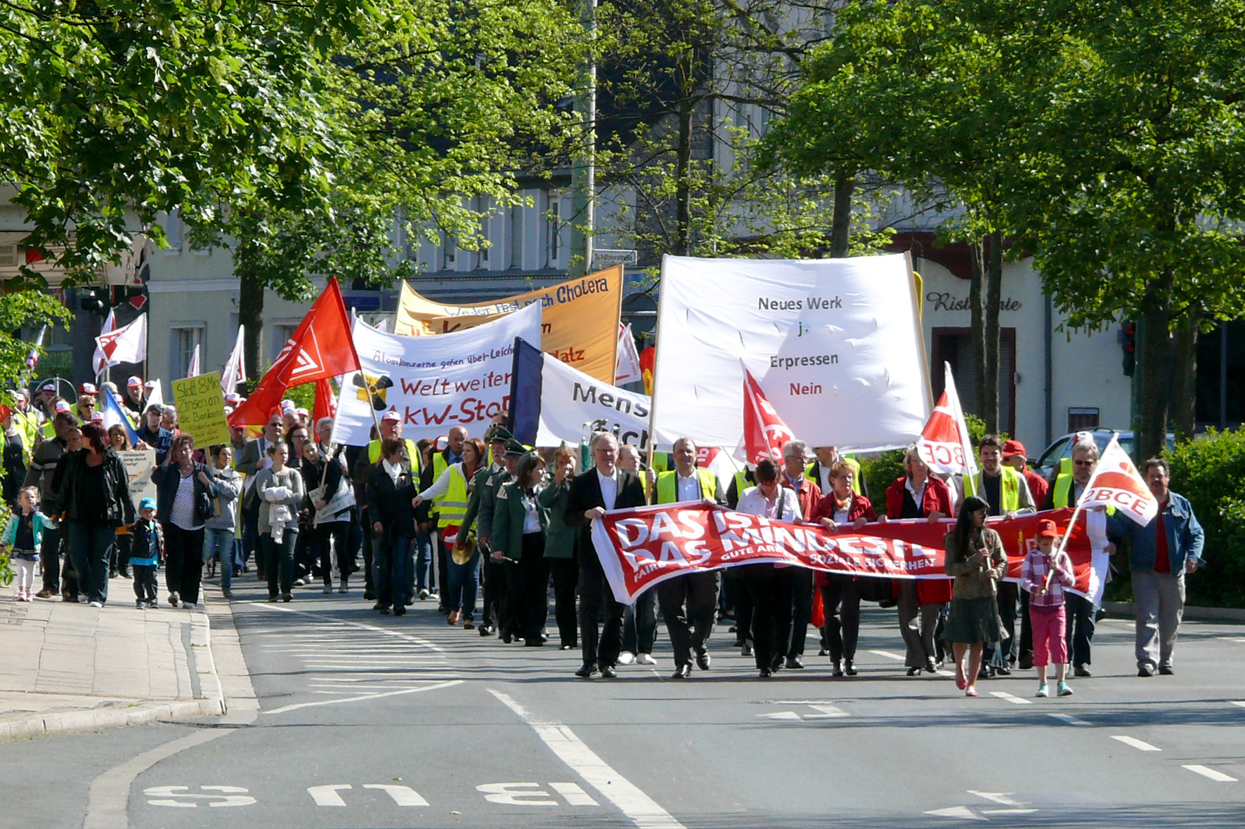 Mit einem Demonstrationsmarsch von Disteln bis zur Innenstadt machten die Teilnehmer der Maikundgebung auf ihre Anliegen aufmerksam.
