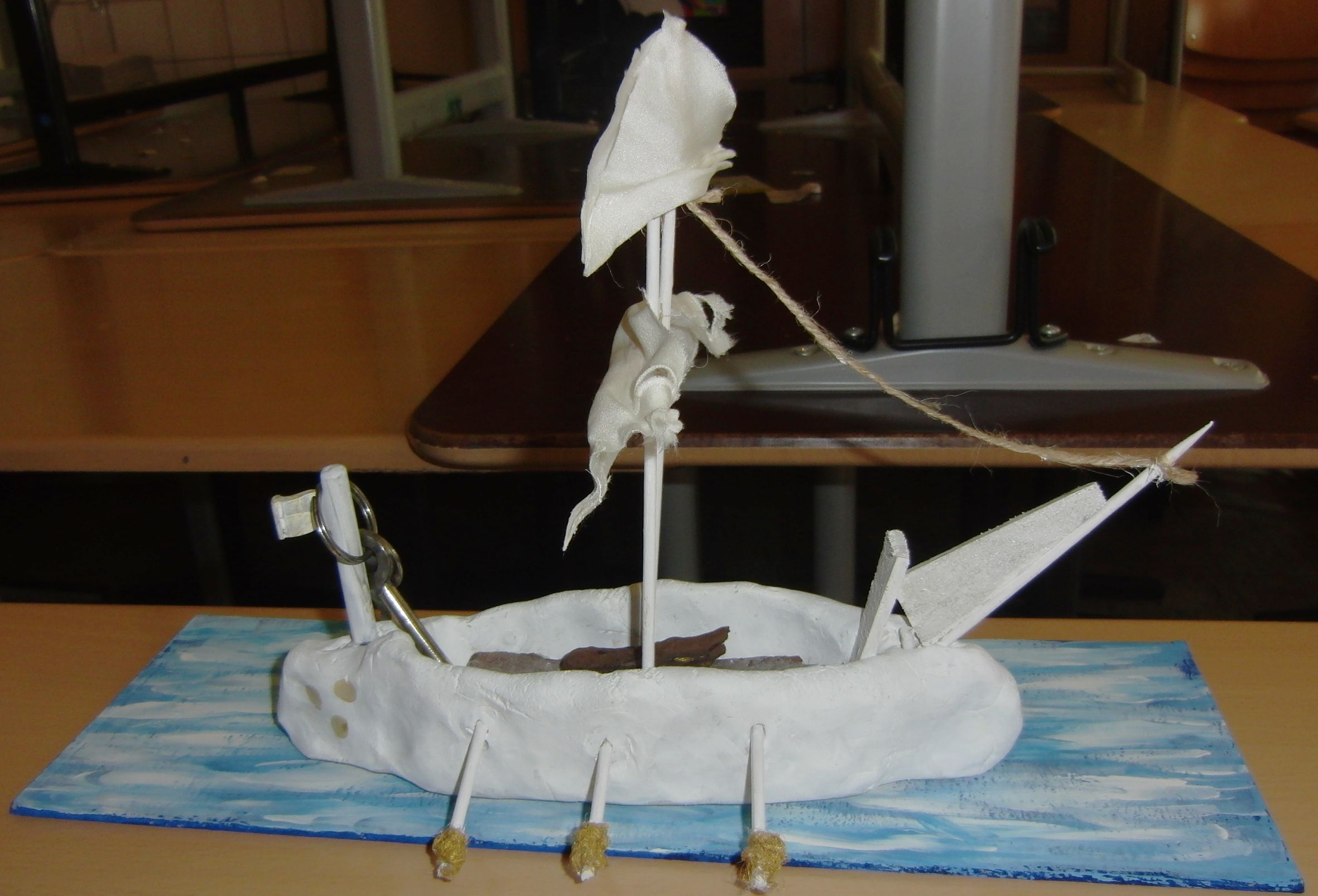 Mit Schiffsmodellen wie diesem dokumentierten die Anrather Schüler die Gorch-Fock-Affäre. Foto: Kreis Viersen - Abdruck honorarfrei