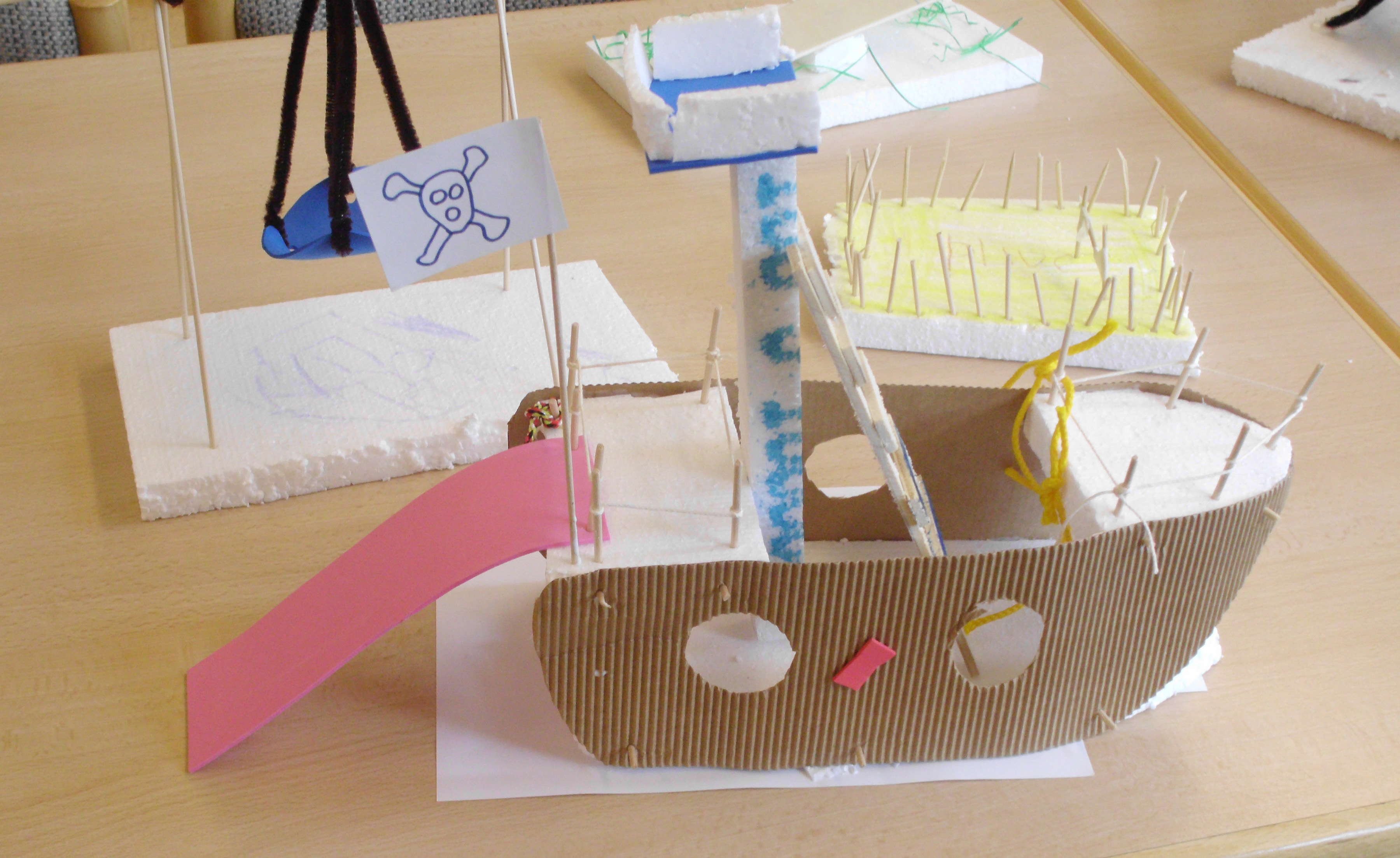 Die während der Planungswerkstatt in Rheinen gebauten Modelle werden bis zur Vorstellung der Spielplatz-Umbaupläne im Dorfgemeinschaftshaus gelagert. Danach werden sie von den jungen “Architekten” mit nach Hause genommen.