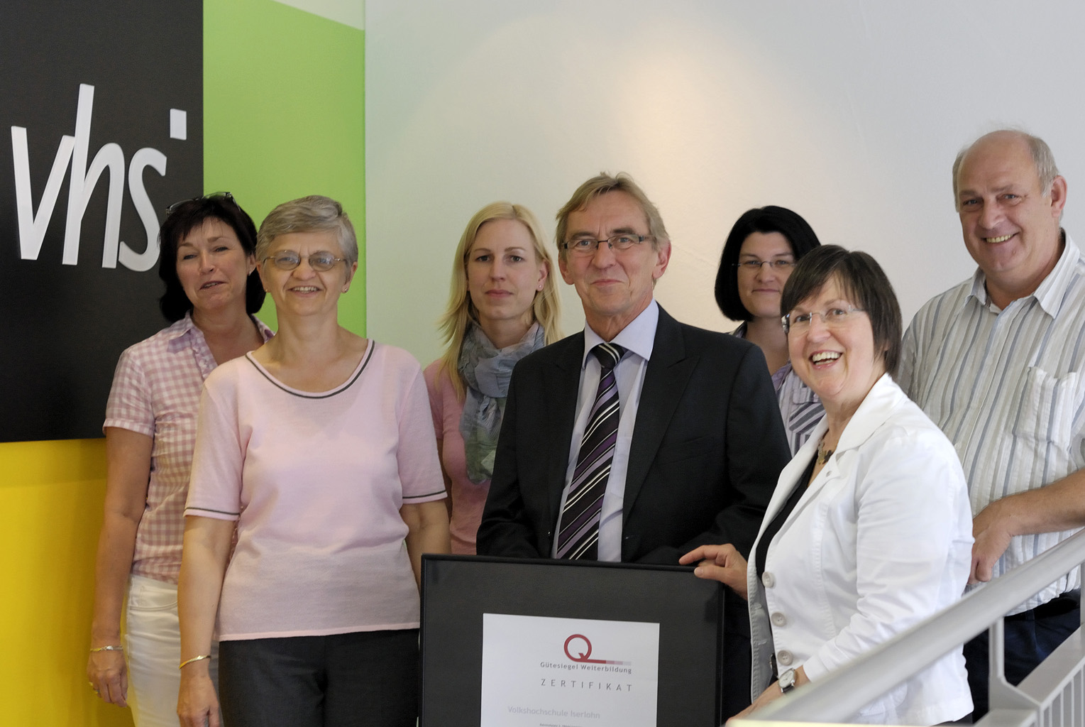 Bürgermeister Dr. Peter Paul Ahrens (M.) gratulierte dem VHS-Team zur erneuten Rezertifizierung: Die Volkshochschule Iserlohn hat das “Gütesiegel Weiterbildung“ bis 2014 erhalten.