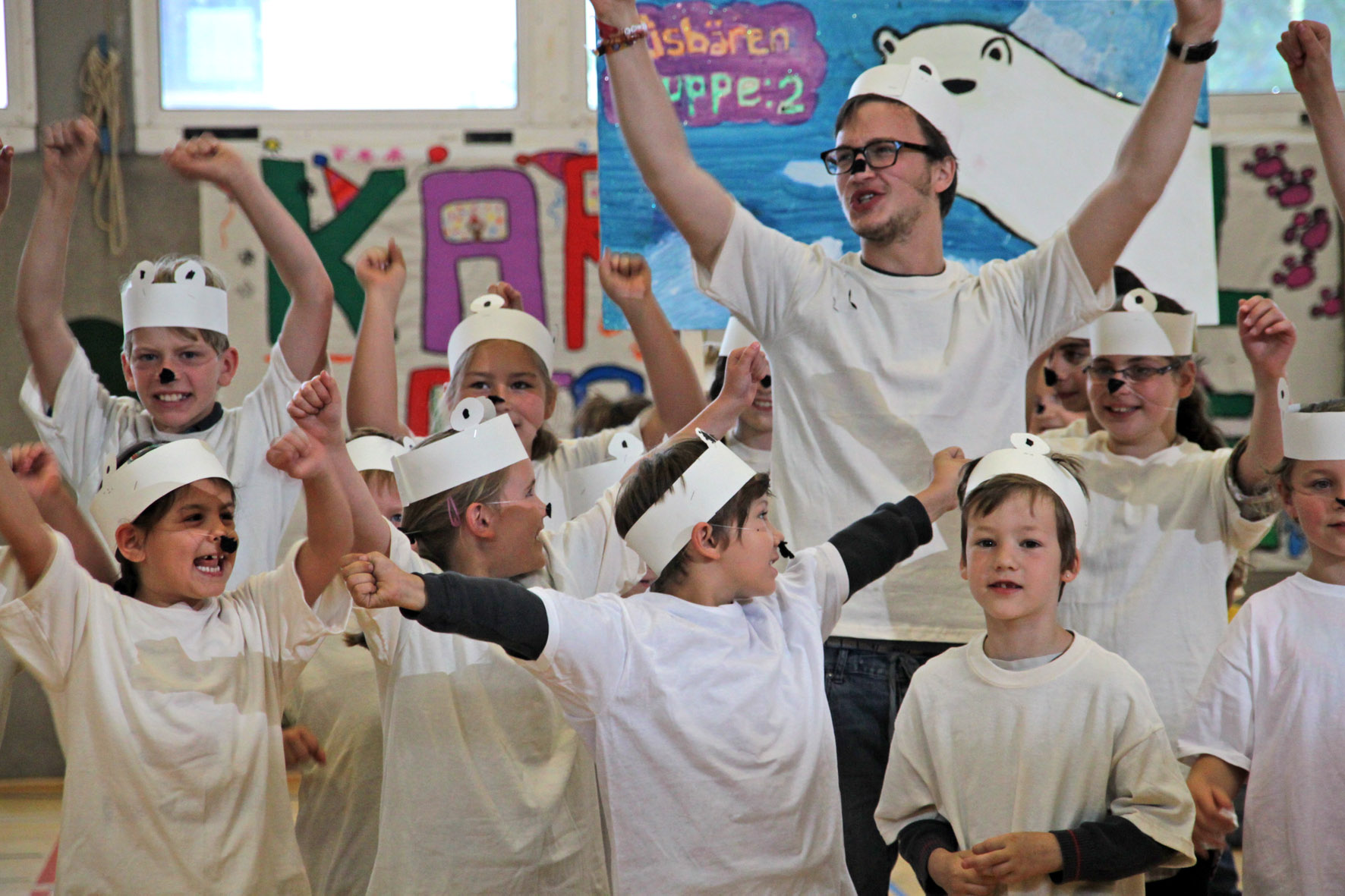 Unter Anleitung ihrer Betreuer hatten die Kinder passenden Kostüme gebastelt und verwandelten sich in der Sporthalle in wilde Tiere.