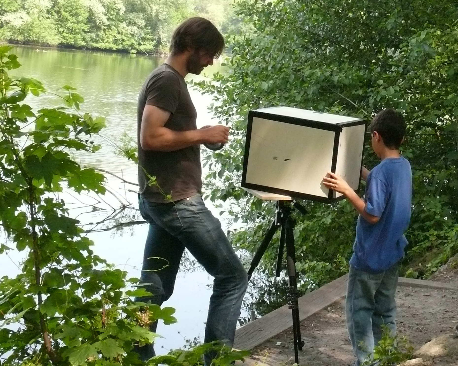 Zusammen mit Henning Maier-Jantzen begaben sich die Nachwuchsfotografen der CreativWerkstatt Jugendkunstschule Herten auf die Spuren der frühen Fotografie und bauten eine Camera Obscura nach.