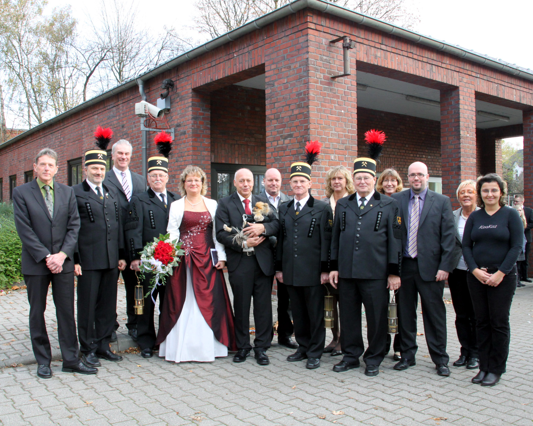 Die Mitarbeiter des Standesamtes, eine große Hochzeitsgesellschaft und die Mitglieder des Bergmannchores gratulieren dem Brautpaar Ute Kiele und Paul-Werner Makurat.