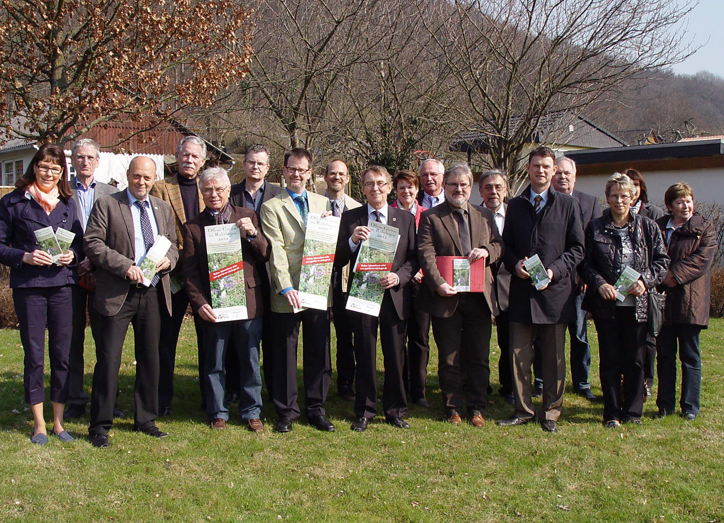 In der Kleingartenanlage Seilersee stellten die Bürgermeister und Vertreter der acht beteiligten Städte sowie Mitglieder der Projektgruppe die Broschüre "Offene Gärten im Ruhrbogen" vor.