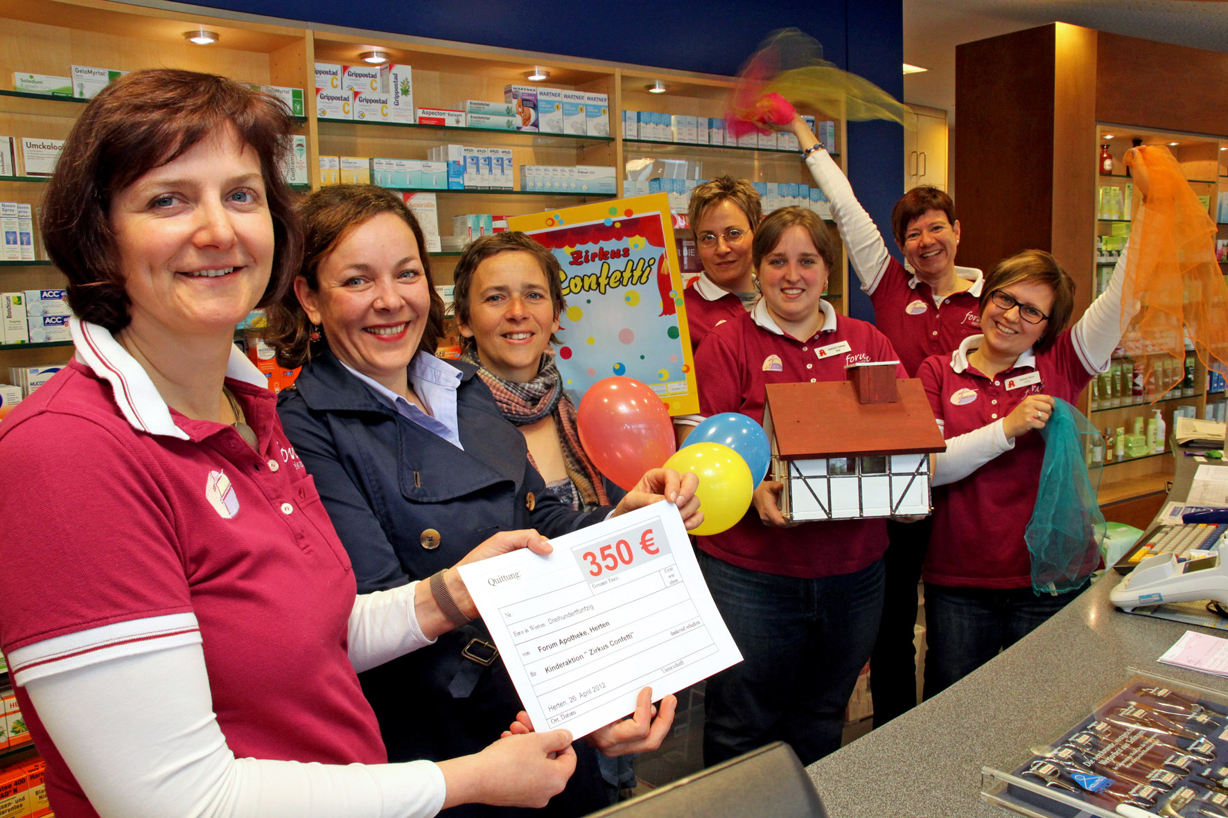 v. li.: Claudia Lindner-Wahlen, Sylvia Steffan (Stadt Herten), Karina Spohr (Hof Wessels), Marion Galbaz-Weber, Sabrina Schipp, Anne Heiner und Sabine Blum freuen sich, dass das Zirkusprojekt Confetti unterstützt wird.