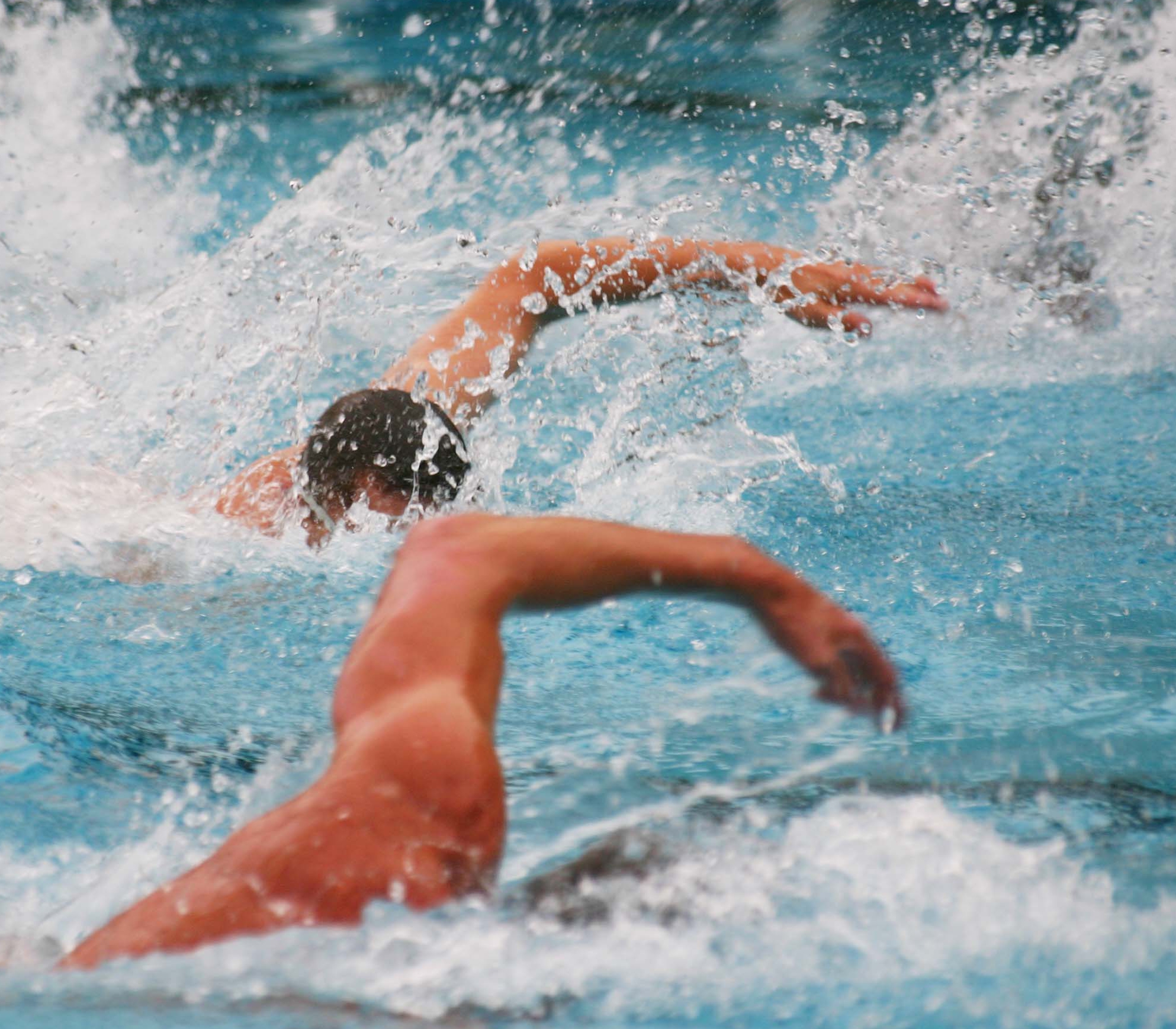 Wasserschlacht: Zwei Schwimmer kraulen im sportlichen Wettkampf. Um Punkte und Zeiten im Wasser geht es am 12. Juni für die Martin-Schule. Die Kempener Hauptschule nimmt mit zwei Teams am Landesfinale Jugend trainiert für Olympia teil. Foto: Tom Trumpelt/pixelio.de - Abdruck honorarfrei