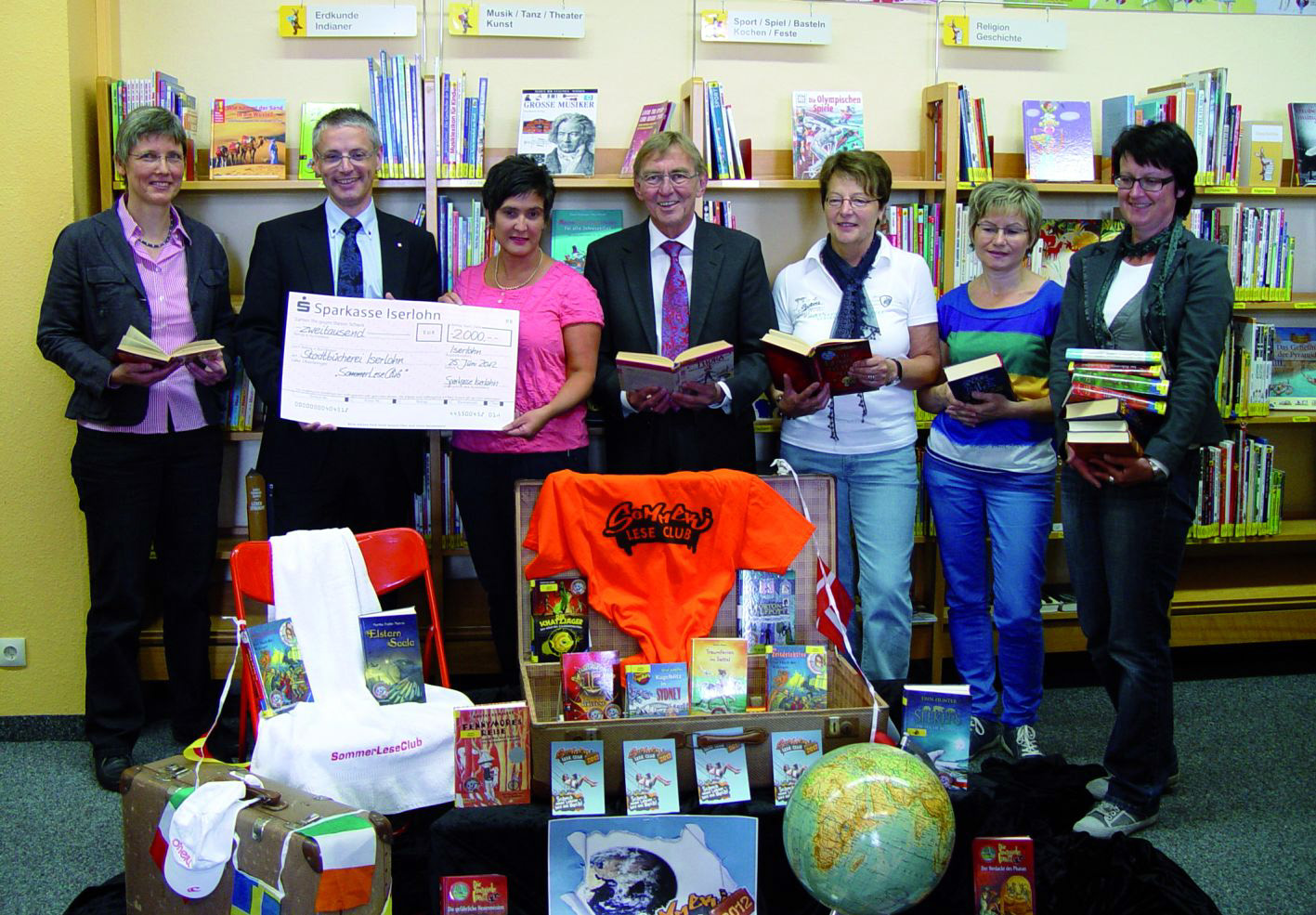 Stellten im Rahmen eines Pressegespräches den "SommerLeseClub 2012" vor (v.l.): Büchereileiterin Gudrun Völcker, Martin Koch (Sparkasse Iserlohn), Petra Koch (Stadtbücherei), Bürgermeister Dr. Peter-Paul Ahrens, Rosemarie Hanselmann, Gabi Erbrich (Stadtbücherei) und Ute Bohne (Mayersche Buchhandlung Potthoff).