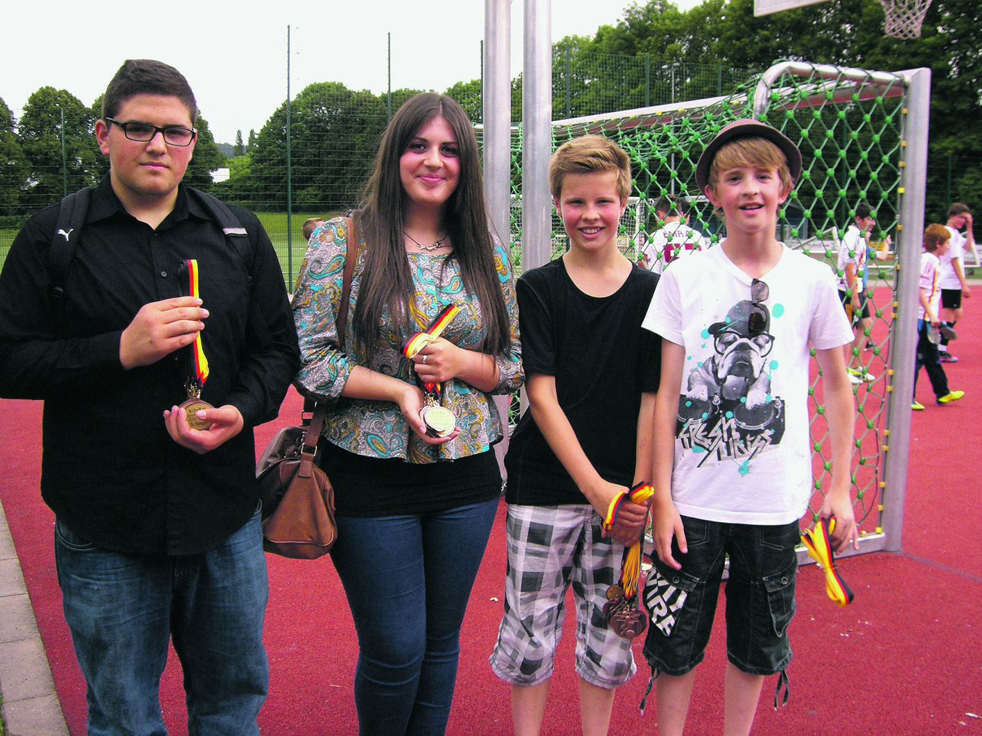 Ali Üstün, Hiba Ahmad, Oliver Rosmus und Jona Böhme vom Kinder- und Jugendrat überreichten die Siegermedaillen.