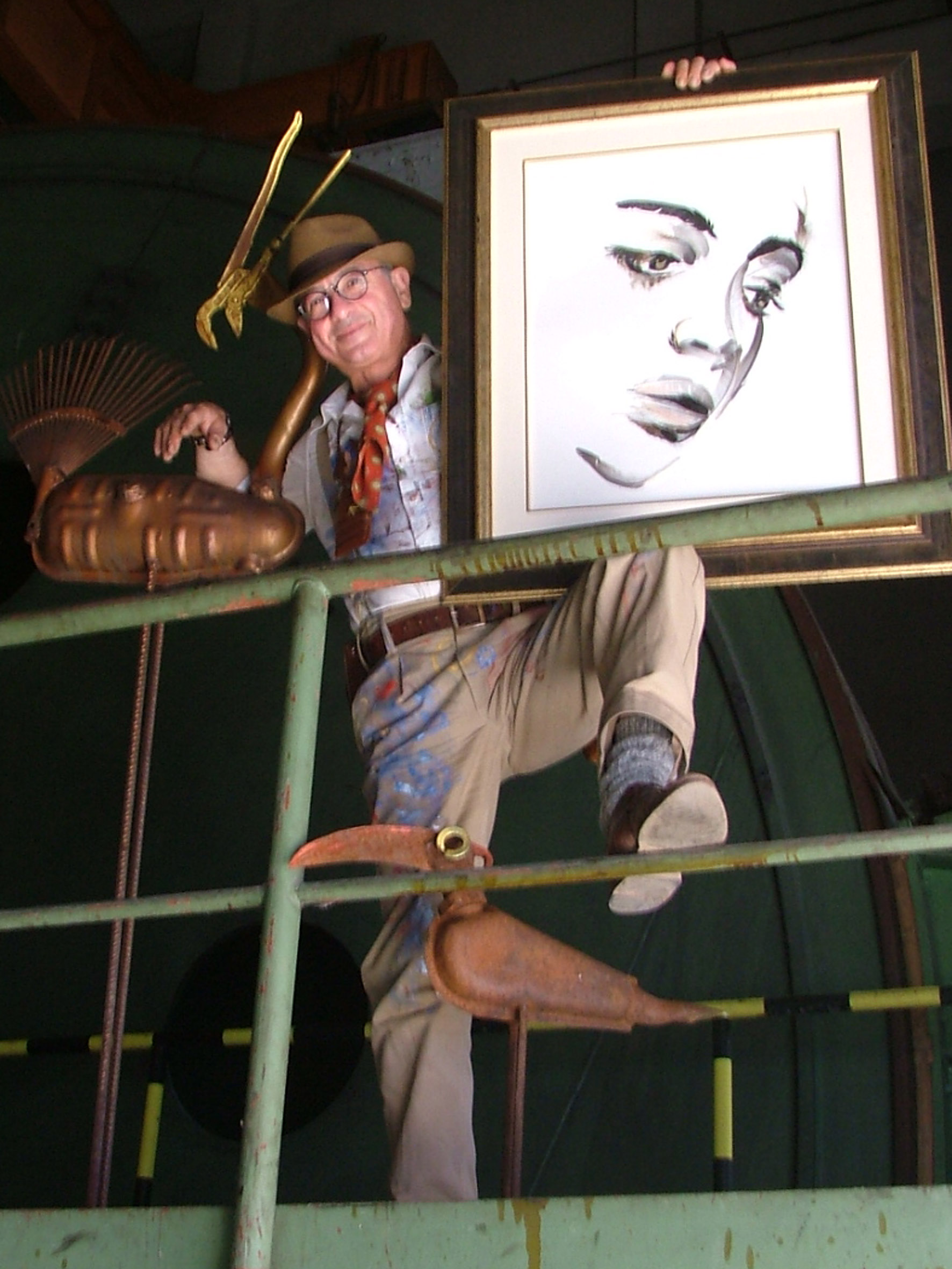 Iskender Gider in der Maschinenhalle Nord - mit seinen Metallvögeln und einem Federbild. (Foto: Bernd Uppena)