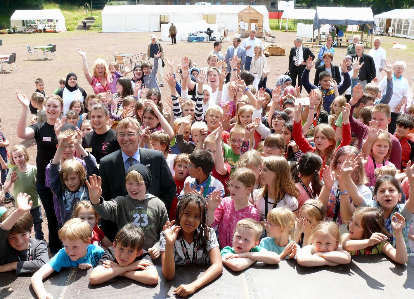 Zur Eröffnung der Kinderstadt versammelte sich das “Volk von Iser-Kid-City” vor der großen Bühne. Mittendrin: Bürgermeister Dr. Peter Paul Ahrens, der allen Beteiligten viel Spaß wünschte.