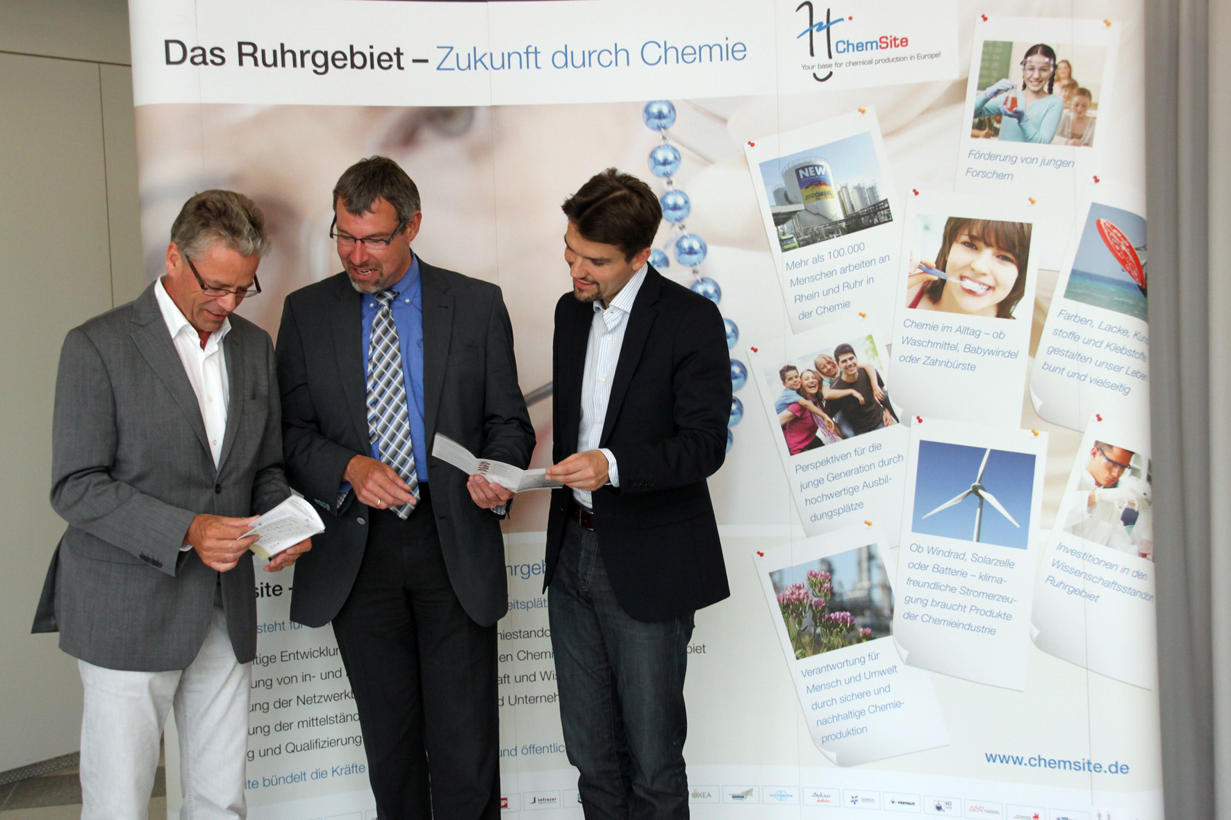 v. li.: Peter Brautmeier, städtischer Fachbereichsleiter Wirtschaft und Arbeit, Dr. Jörg Marth, Leiter ChemSite-Initiative, und Bürgermeister Dr. Uli Paetzel.