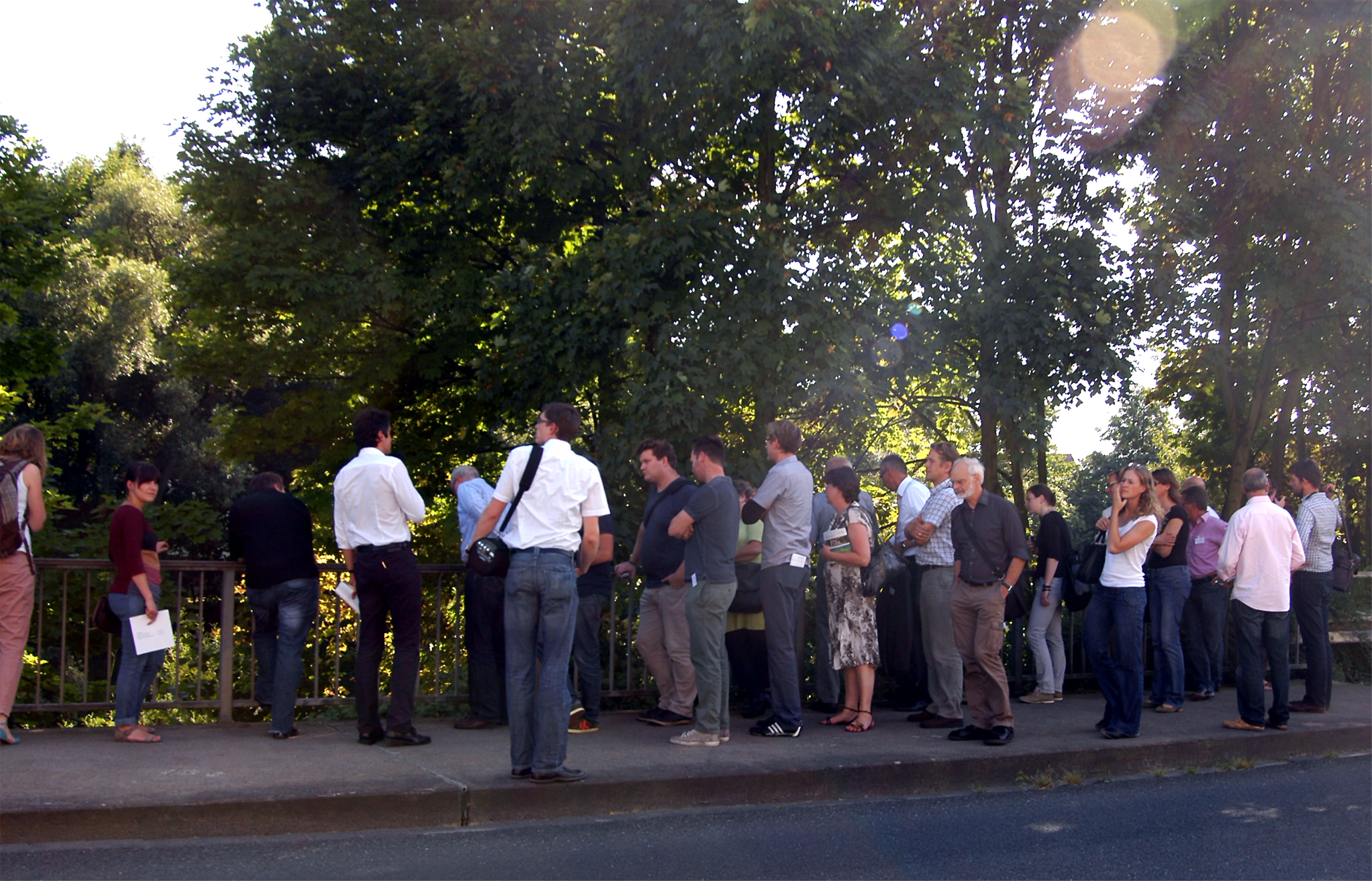 Die Teilnehmer des Einführungskolloquiums beim Rundgang durch das Wettbewerbsgebiet.