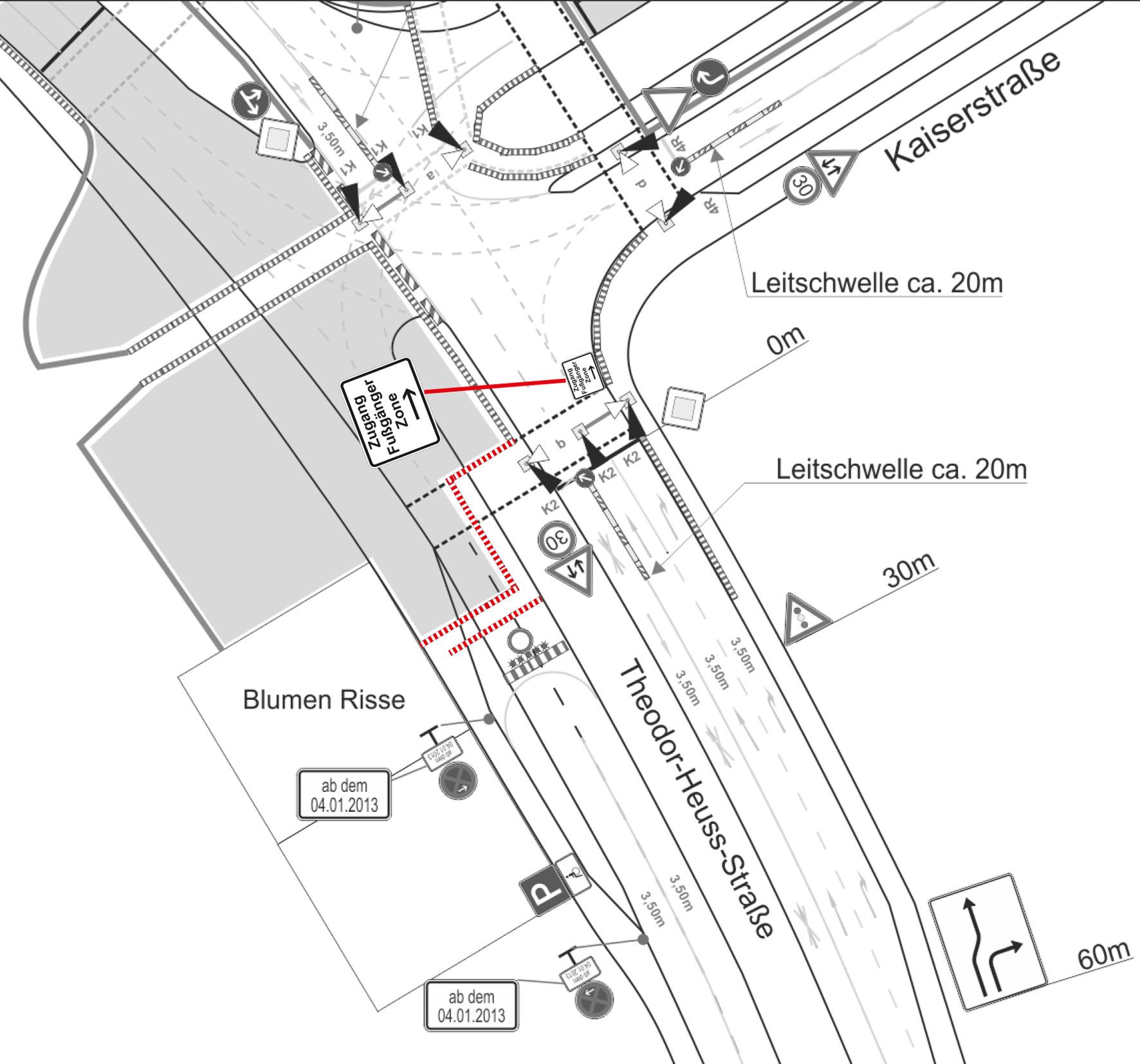 Im Rahmen der Neugestaltung des ZOB bleiben Teile der Gehwegbereiche der Antonius- und Theodor-Heuss-Straße einen Monat lang gesperrt.