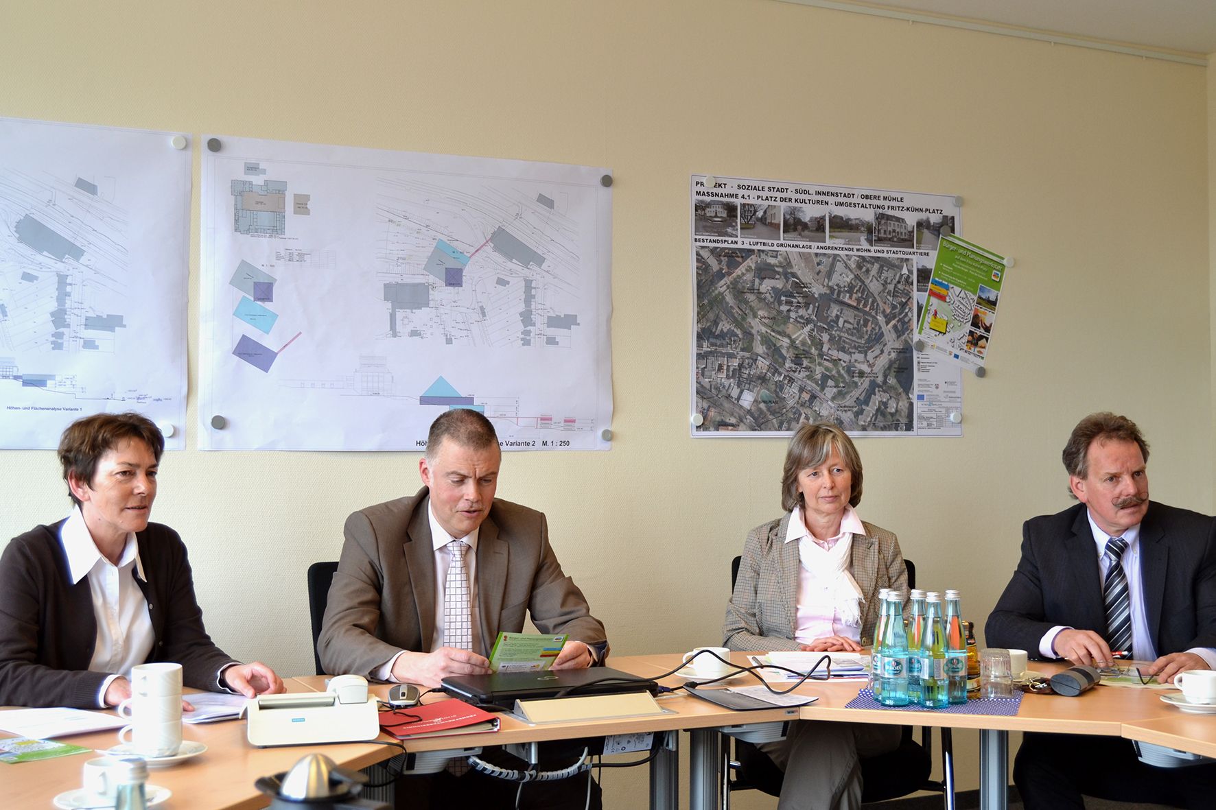 Laden alle Interessierten zur Teilnahme ein (von links): Medienreferentin Christine Schulte-Hofmann, Ressortleiter Olaf Pestl, Stadtplanerin Gabriele Bilke und Grünflächenplaner Ingo Genster.