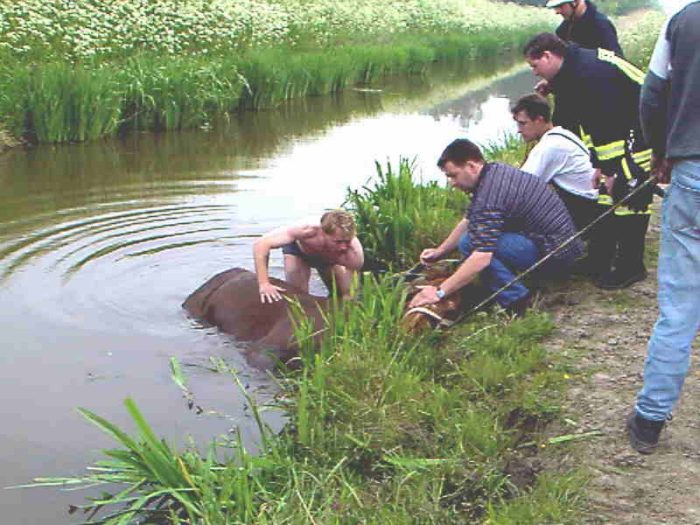 Frau und Pferd gerettet