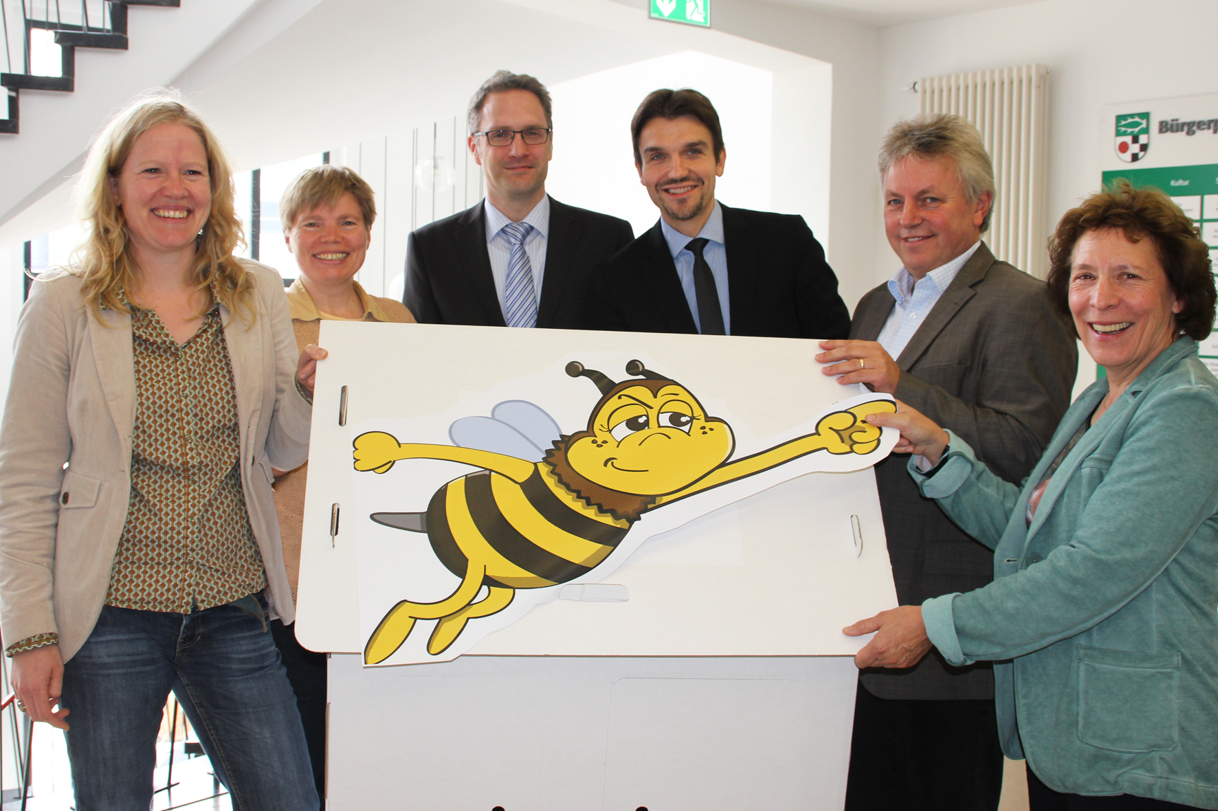 Irja Hönekopp, Dr. Babette Nieder (beide Stadt Herten), Stadtwerke-Geschäftsführer Thorsten Rattmann, Bürgermeister Dr. Uli Paetzel, Detlef Großjohann (Bereichsleiter Hertener Stadtwerke) und Susanne Barth (Stadt Herten) (v.l.) freuen sich auf den Klima-Aktionstag am 21. September.