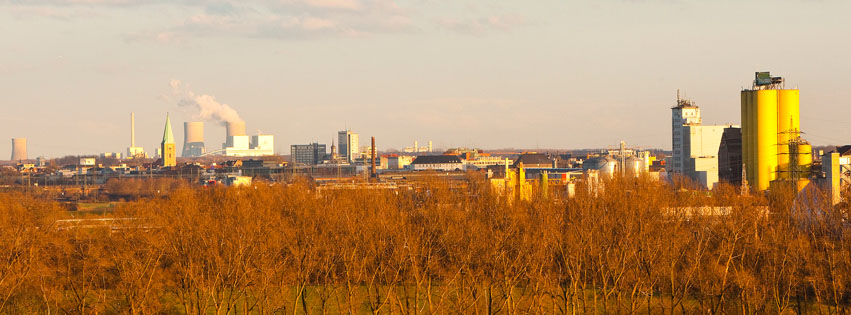 Die lange Zeit milder Temperaturen und die richtige Sonneneinstrahlung ergeben ein ungewohntes Winterbild. Beim Blick von der Halde Bockum-Hövel in Richtung Innenstadt ist die Landschaft in ein goldenes Licht getaucht. Auch wenn der Schnee (noch) fehlt, sind die kahlen Bäume ein Hinweis auf die Winterzeit. Foto: Thorsten Hübner
