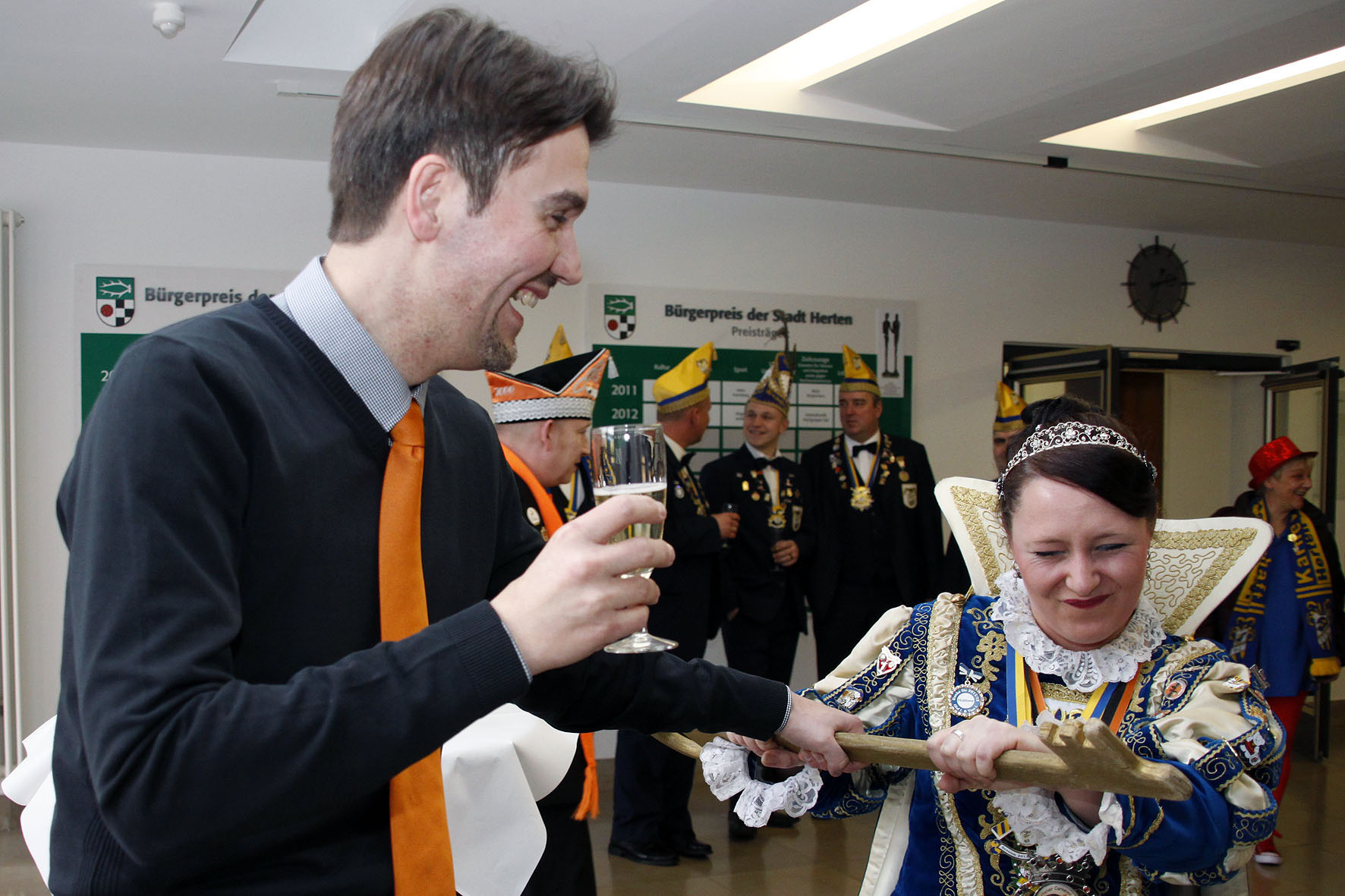 Keine Chance - Karnevalsprinzessin Jasmin I entreißt Bürgermeister Dr. Uli Paetzel den Schlüssel zum Rathaus. Der nimmt es mit Humor!