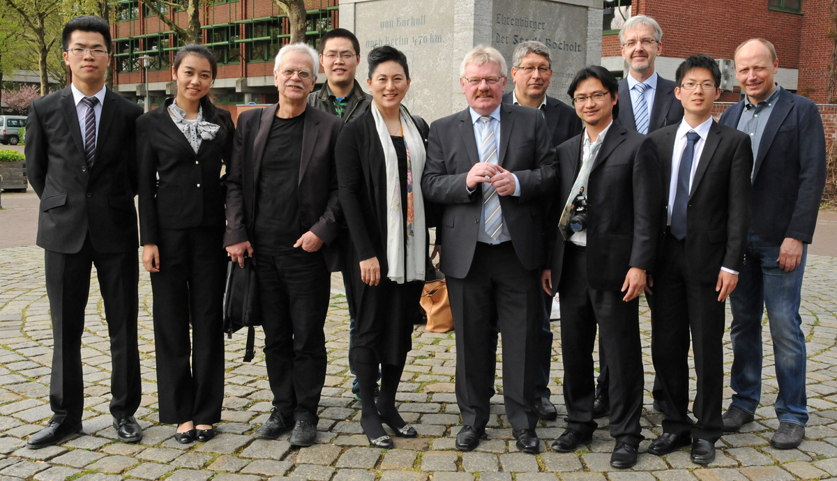Bocholts Bürgermeister Peter Nebelo (6.v.l.) empfing am 7. April 2014 eine Delegation der Peking University - Foto: Bruno Wansing, Stadt Bocholt