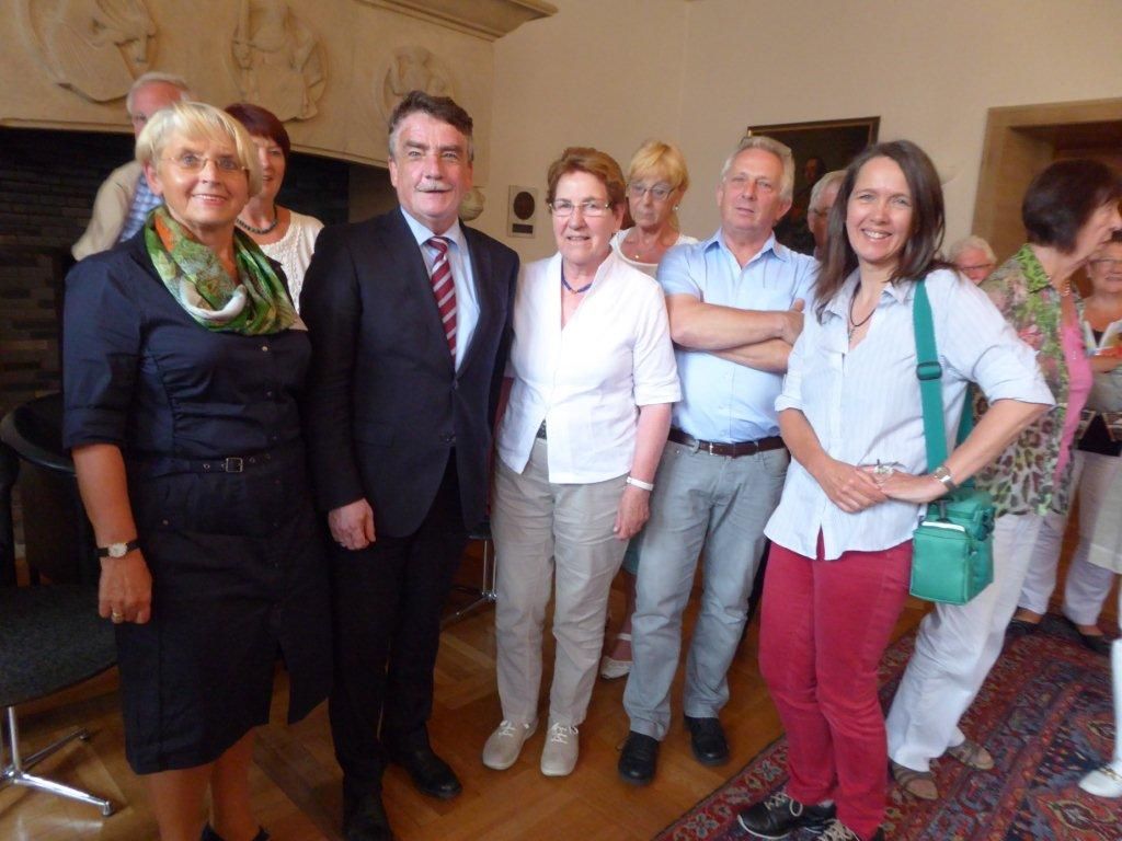 Bei der Veranstaltung der Landesseniorenvertretung NRW in Münster: Gaby Schnell, Vorsitzende der Landesseniorenvertretung NRW (vorne: 1.v.li.), Michael Groschek, Minister für Bauen, Wohnen, Stadtentwicklung und Verkehr des Landes Nordrhein-Westfalen (2. v. li.) sowie Sabine Meyer, Geschäftsführerin des Seniorenbeirates der Stadt Iserlohn (1. v. re.).