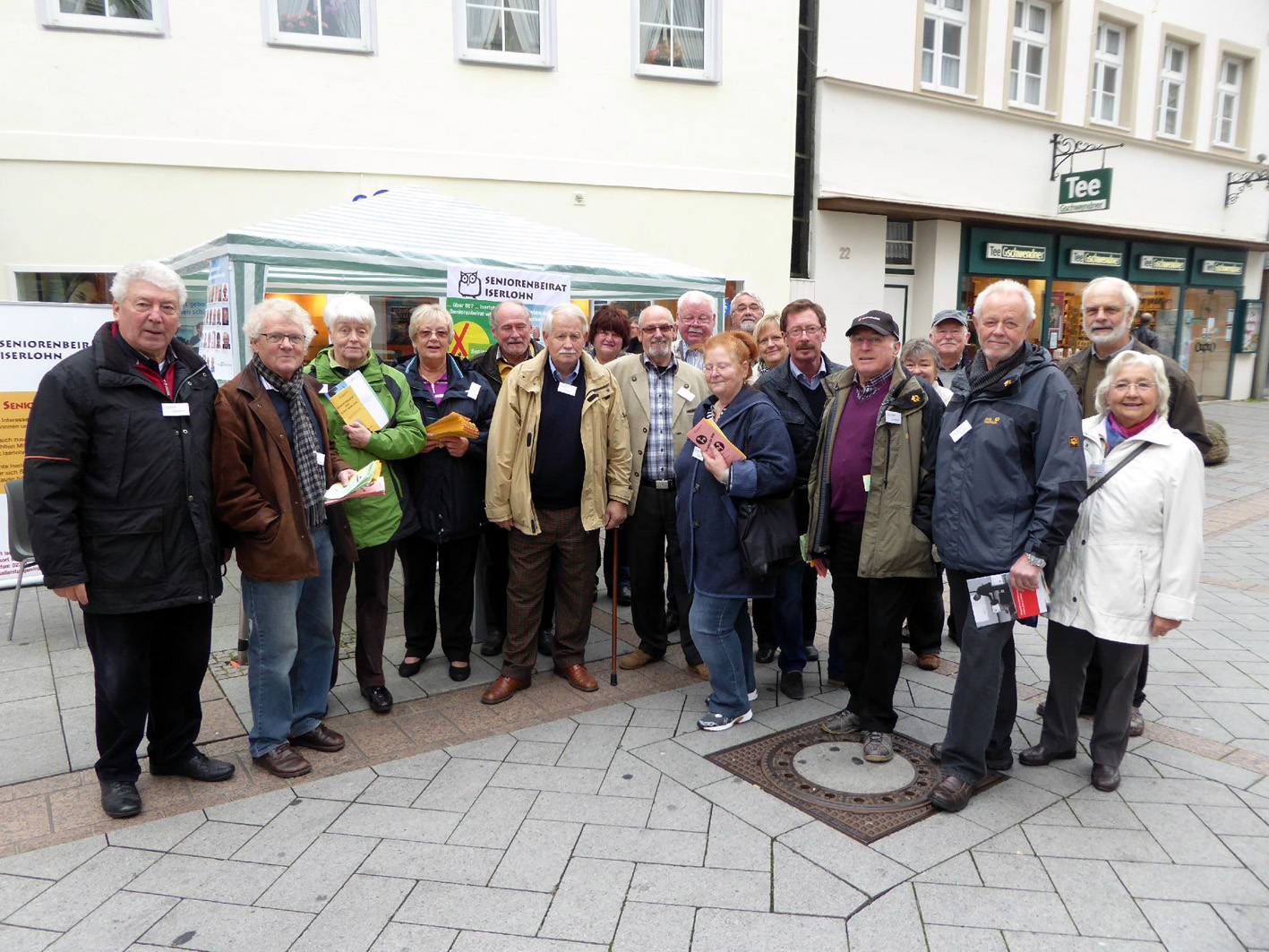 Die Kandidaten und Kandidatinnen der Seniorenbeiratswahl ( v.l.n.r.): Heribert Hahner, Ingo Graumann, Ursula Buddruweit, Brigitte von Kürthen, Egbert Quaschnik, Joachim Pfänder, Gabriela Kollek-Gullo, Jürgen Fiedler, Prof. Kurt-Friedrich Blank, Edeltraud Putz, Werner Hartmann, Uta Lichtenheldt-Leisgen, Uwe Albert, Horst Schwarzbach, Gisela Perel, Norbert Klein-Raufhake, Heinz-Jürgen Wiewel, Dr. Norbert Hesse und Hannelore Fleischer. Nicht mit im Bild sind die Kandidaten Hans Bathelmes, Horst Klink und Christel Osing.