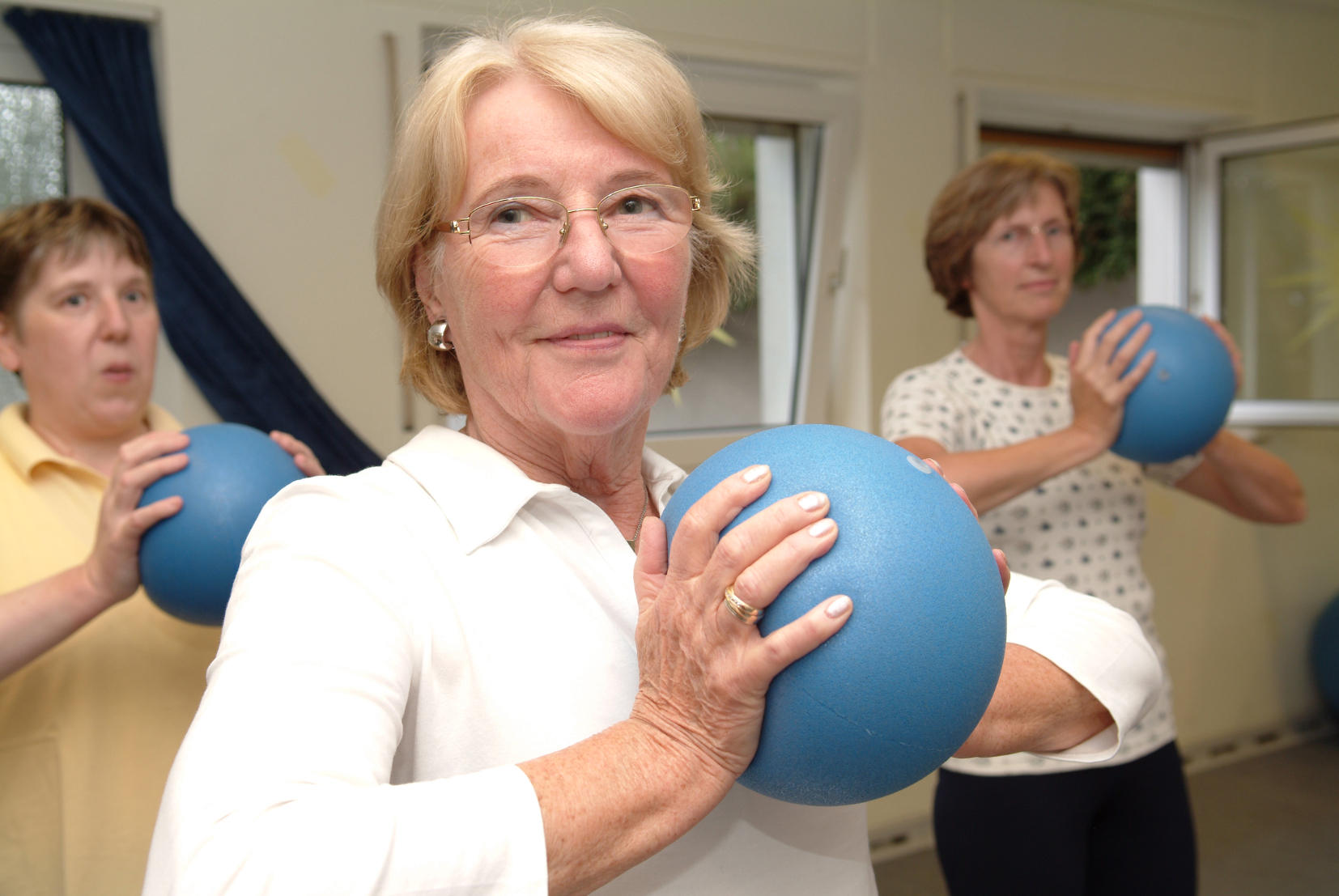 Drei Frauen beim Rehasport. Worauf es bei Angeboten für Patienten mit Arterien-Verkalkung ankommt, lernen die Teilnehmer eines Kurses des Kreissportbunds Viersen. Foto: Landessportbund NRW - Andrea Bowinkelmann - Abdruck honorarfrei