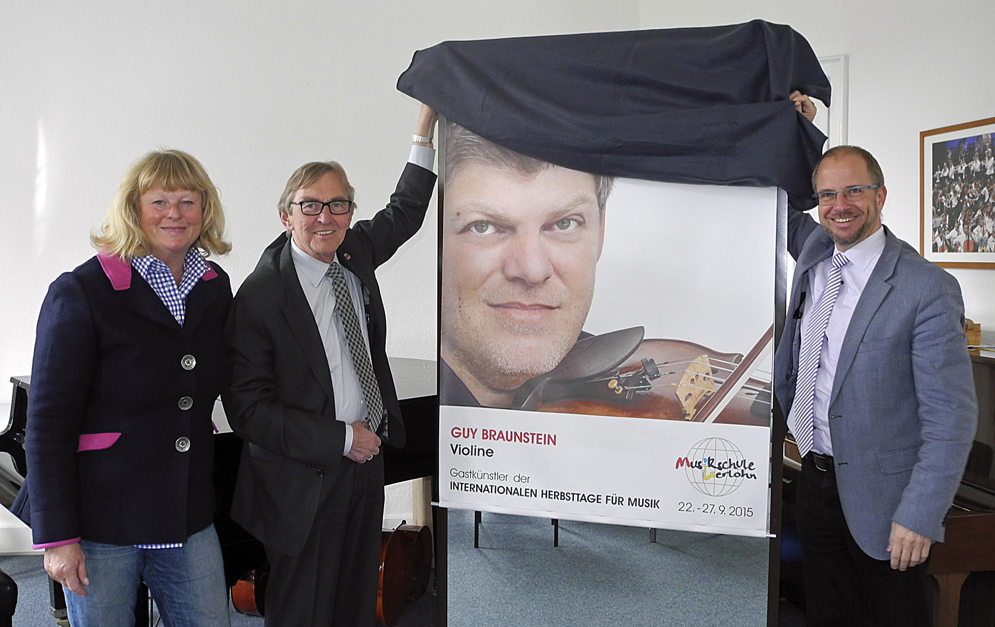 Freundeskreisvorsitzende Tone Johansen-Junius, Bürgermeister Dr. Peter Paul Ahrens und Musikschulleiter Paul Breidenstein freuen sich auf die „Internationalen Herbsttage für Musik 2015“ mit dem Violin-Star Guy Braunstein als Gastkünstler.