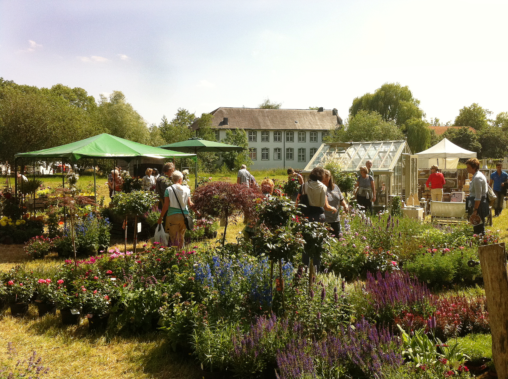 Rund um die historische Dorenburg bauen die Anbieter von Pflanzen, Dekorationen und Kunst ihre Stände auf. Zum 8. Mal zieht "GartenLeben" ins Niederrheinische Freilichtmuseum. Foto: OpenMind - Abdruck honorarfrei