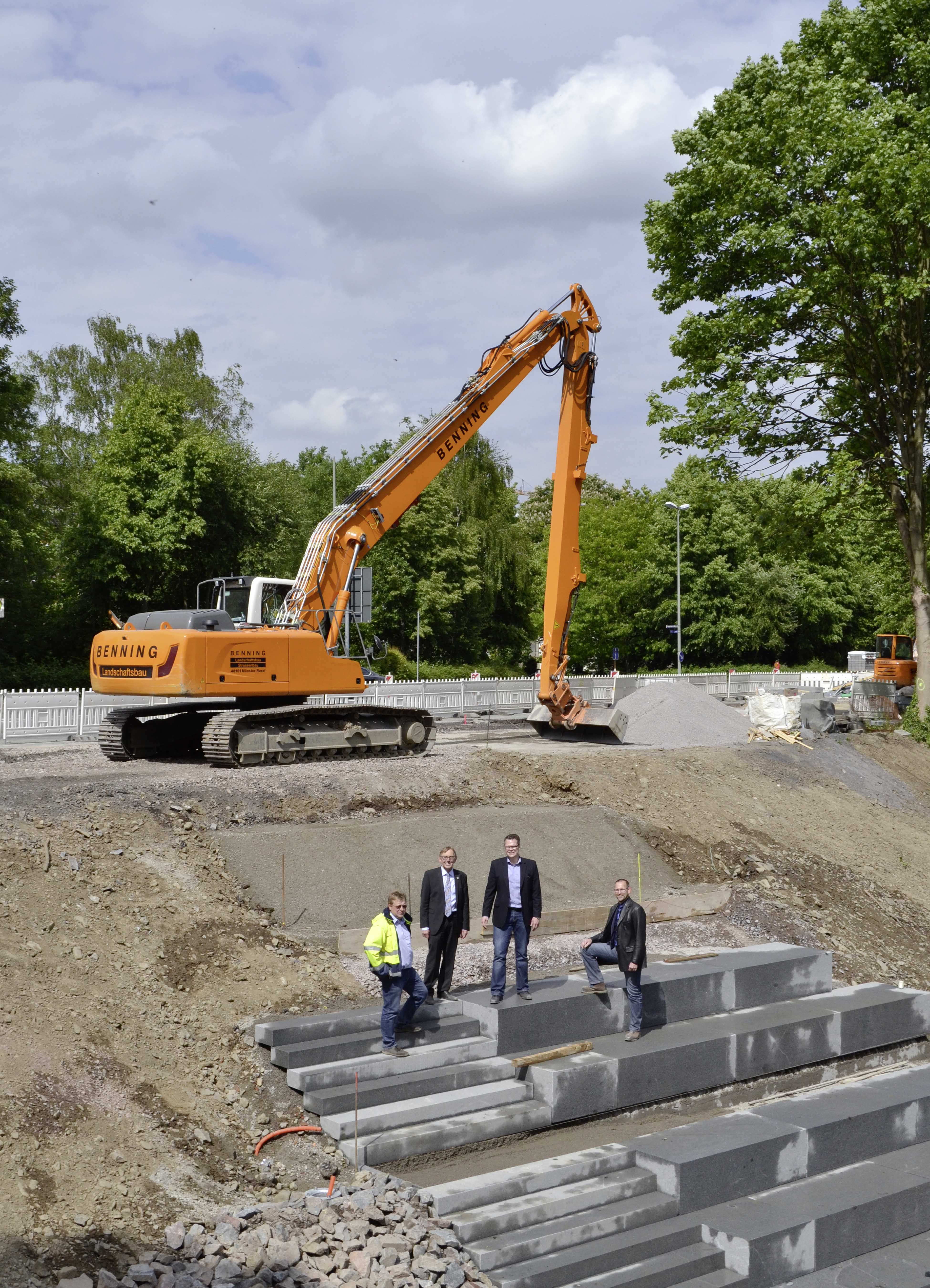 Überzeugten sich vor Ort vom Baufortschritt: Klaus Trunksmann vom beauftragten Ingenieurbüro Hellmann, Bürgermeister Dr. Peter Paul Ahrens, Mike Janke, Leiter des Ressorts Planen, Bauen, Umwelt und Klimaschutz und der städtische Projektleiter Thorsten Grote (v. li.).
