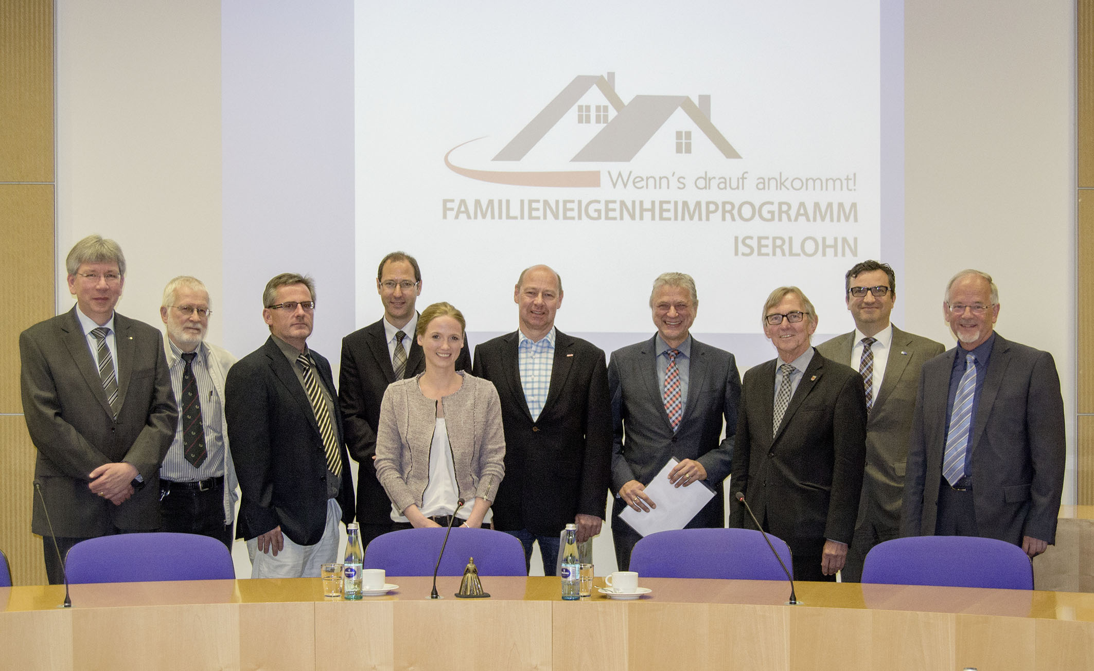 Unternehmer, SIHK, Bürgermeister und Stadtkämmerer werben gemeinsam für das Iserlohner FamilienEigenheimProgramm.